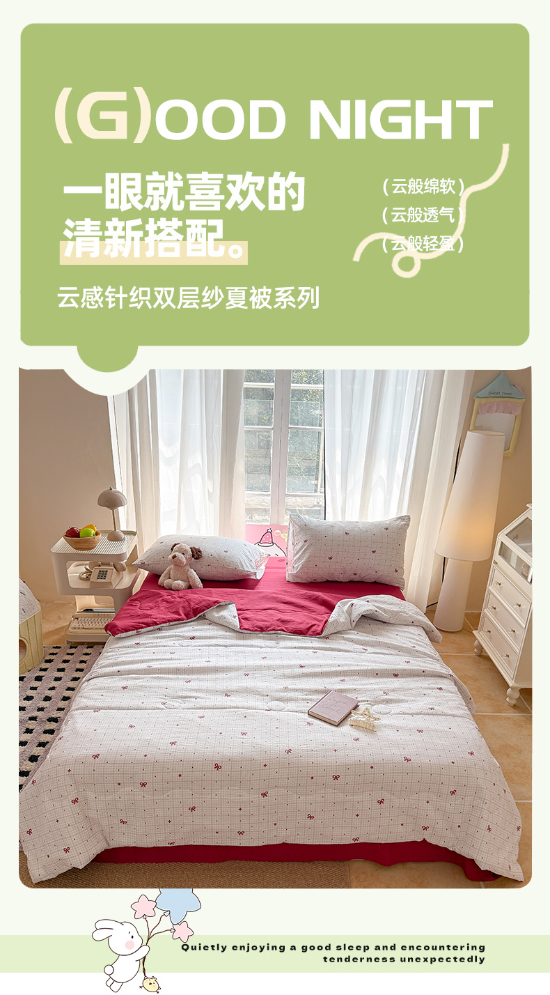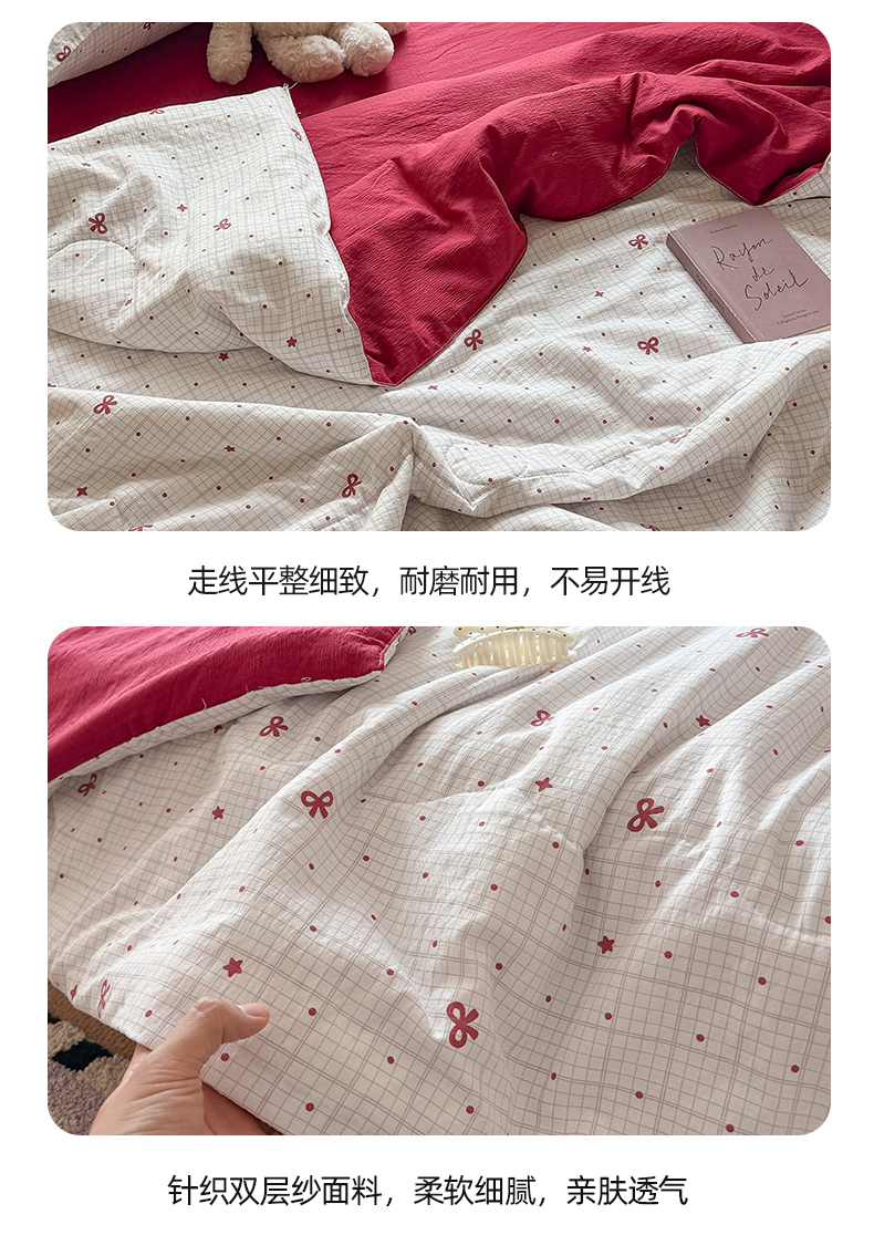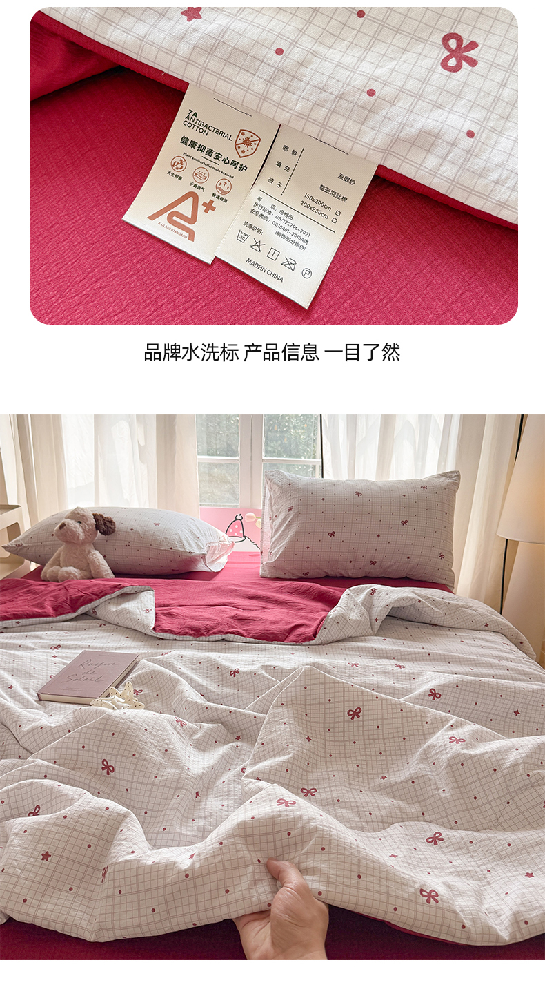 (总)温眠家纺 2026新款针织泡芙双层纱夏被四件套,组合图,彩虹木马,彩虹小波点,粉蝴蝶结,花田猫咪,花织,蓝条木马,礼物盒,萌趣伙伴,魔法精灵,墨蝶,蔷薇玫瑰,青野玫瑰,森语萌宠,苏夏,甜果乐园,甜梦格,童年,小森系,小熊日记,星光灿烂,星光萌马,星空点点,星空里,紫蝶