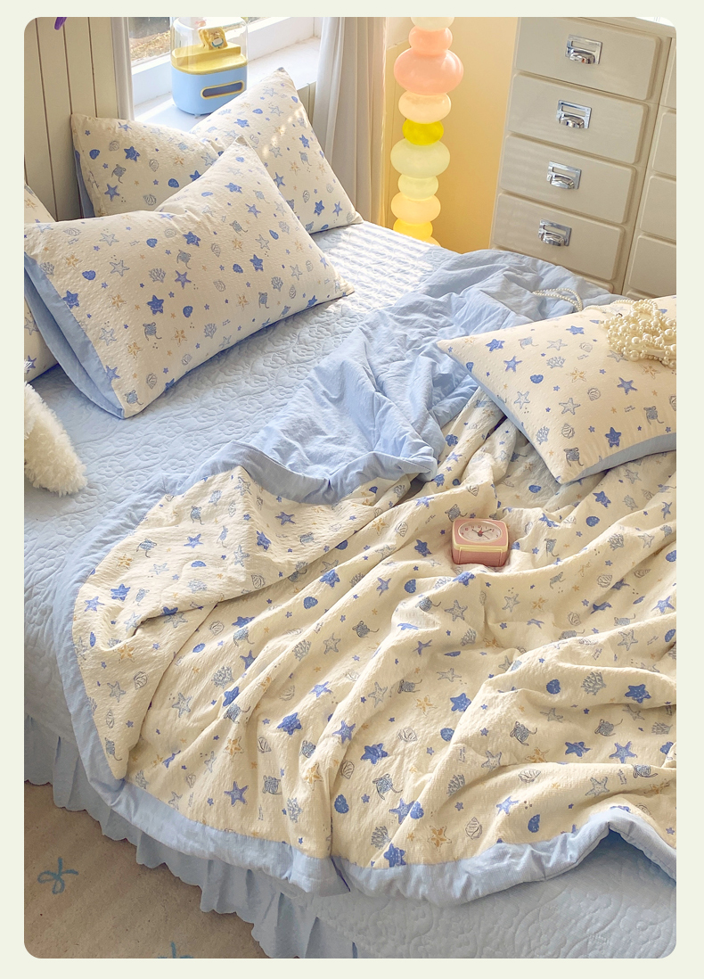 商品名称:莱米家纺 2026新款云感泡泡双层纱手包边夏被夏凉被空调被床盖四件套 星星人