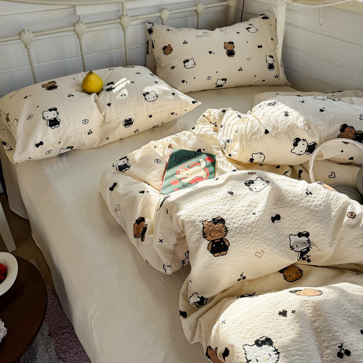 当前位置: 91家纺网 > 商品网购 > 床品套件 > 四件套 > 其它四件套 > 优兰朵 2026新款高品质A类泡芙纱普通款四件套-小红书宿舍春夏爆款 奥利奥小猫