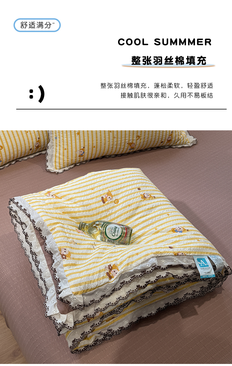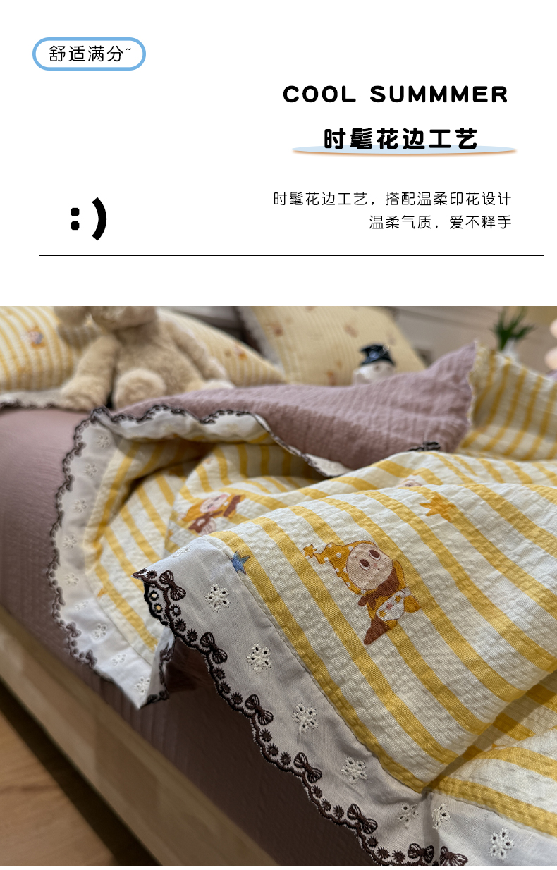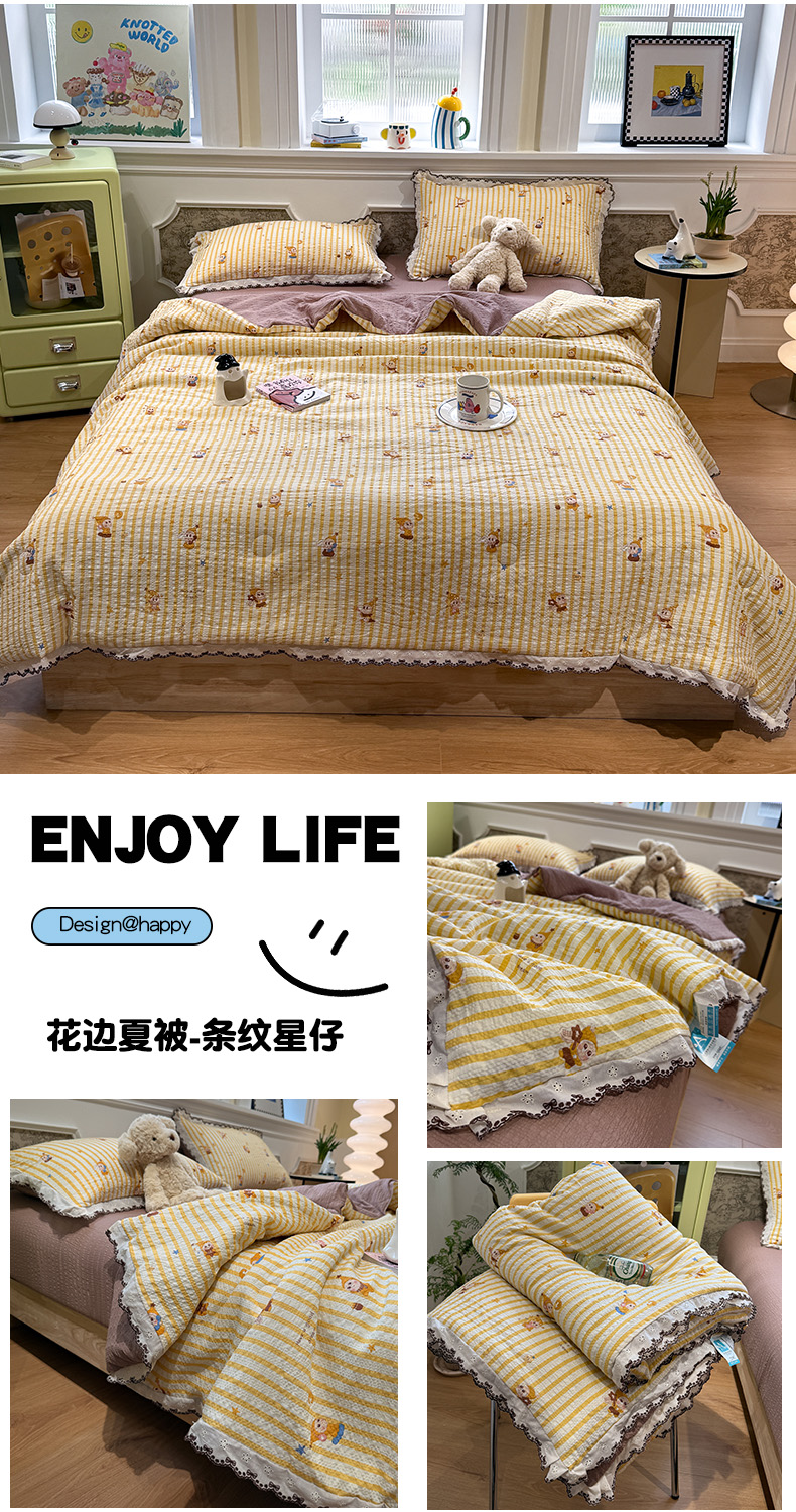 水墨江南 2026新款泡芙纱全棉花边夏被四件套 花边夏被-条纹星仔