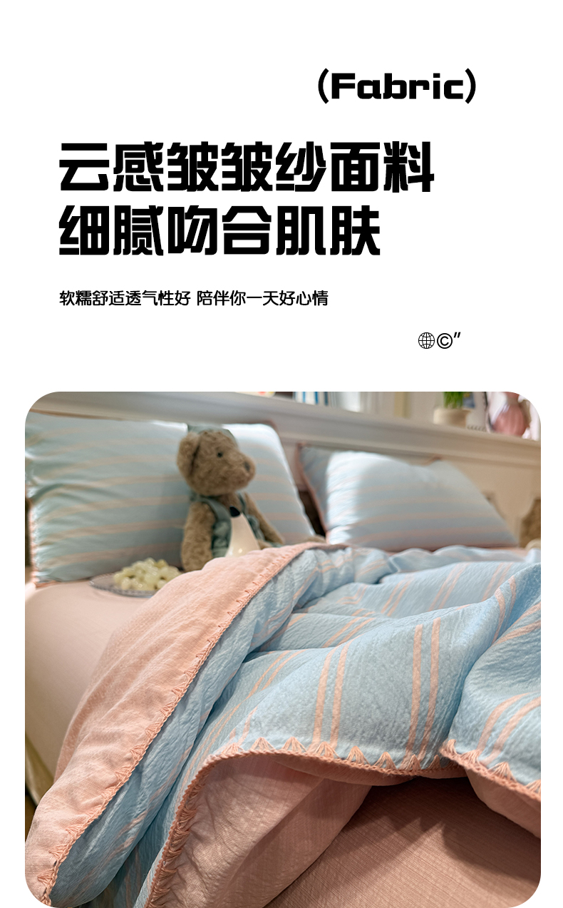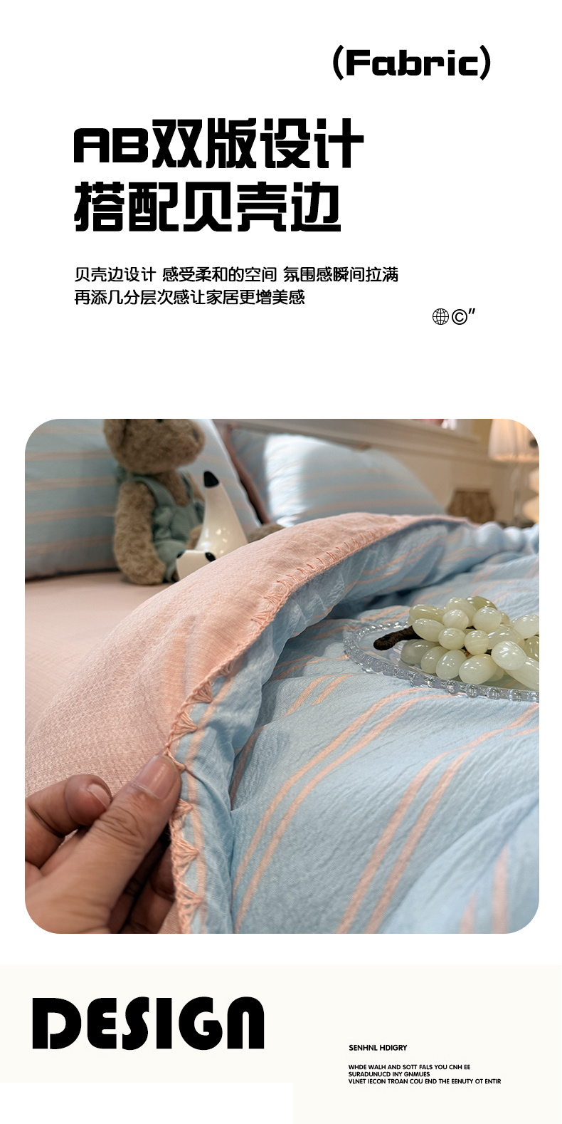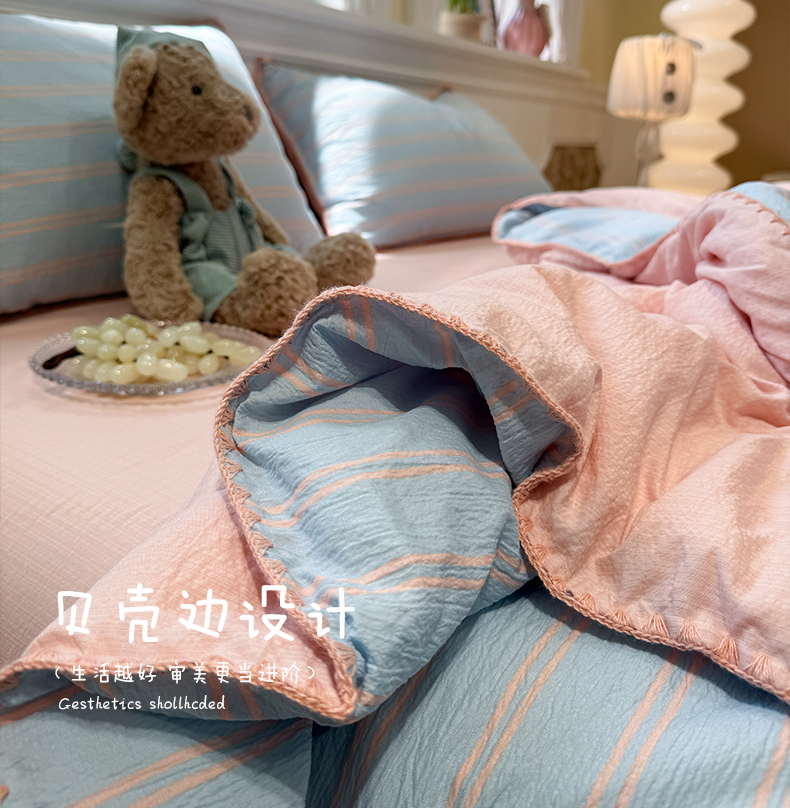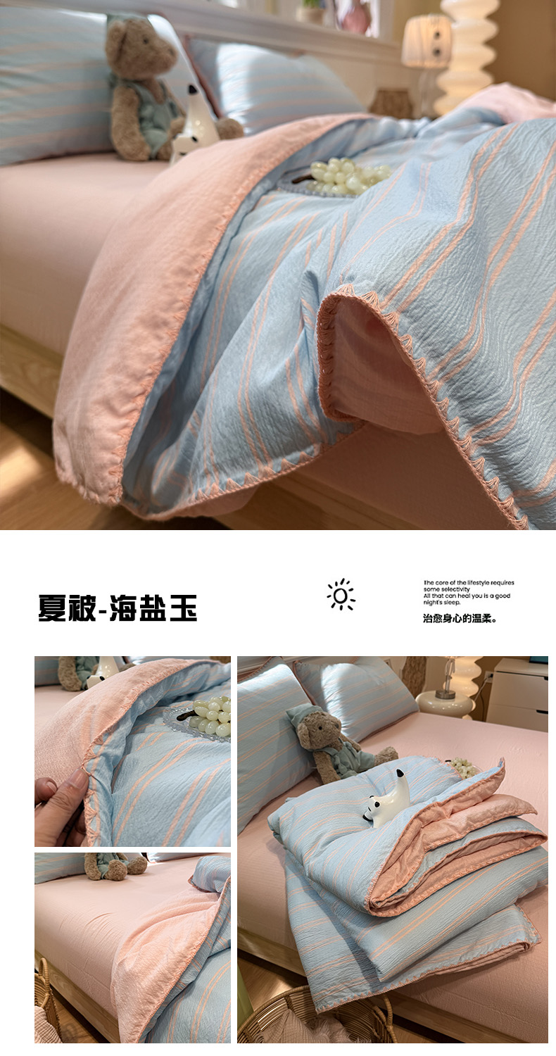 水墨江南 2026新款云感皱皱纱贝壳边夏被四件套 夏被-海盐玉