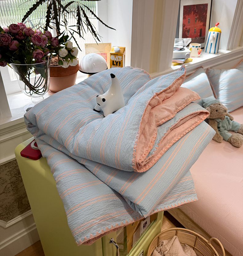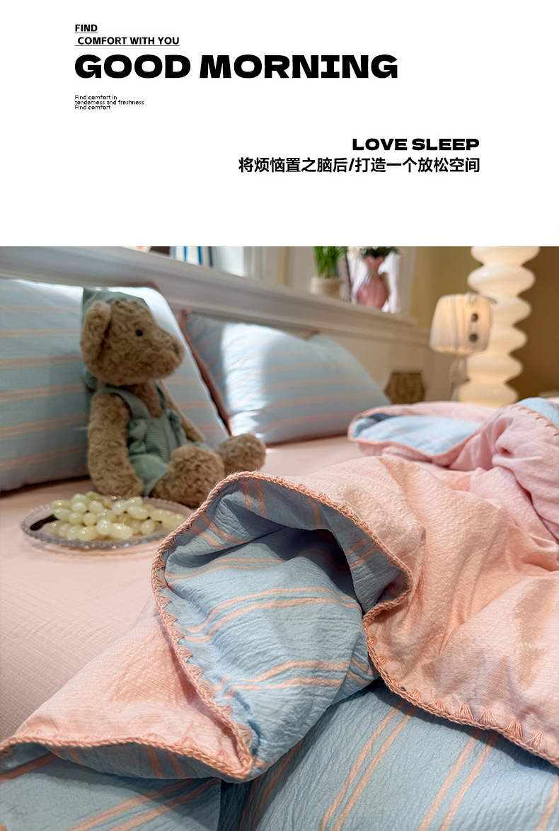 (总)水墨江南 2026新款无印风水洗提花纽扣款四件套,月光灰条,蜜粉条-黄,蜜粉条-蓝,柠檬细条,芋泥紫条