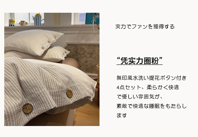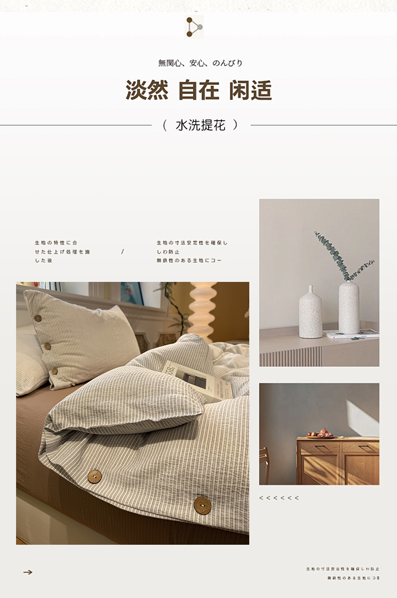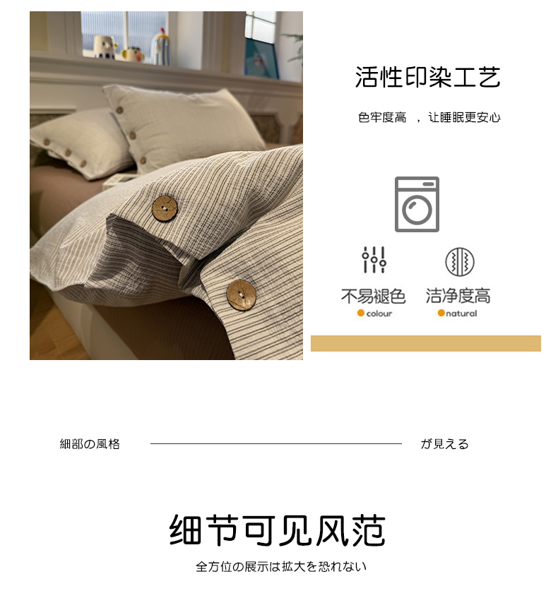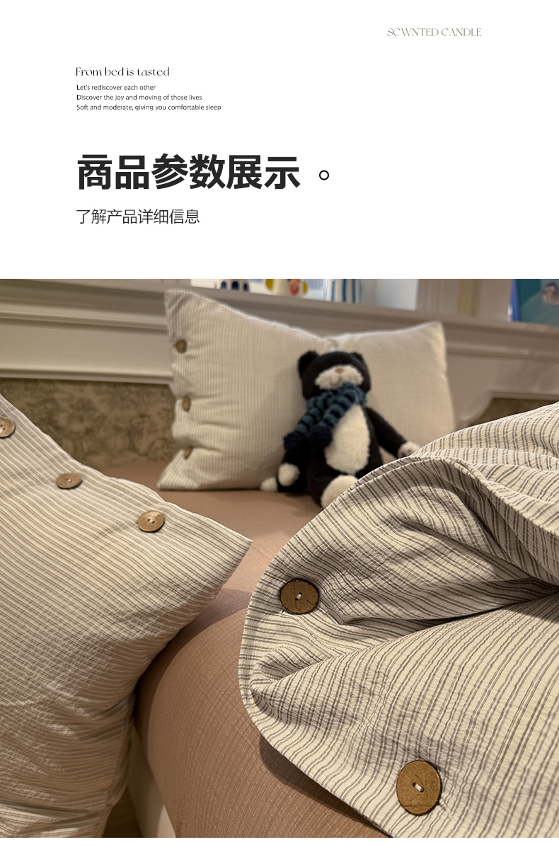 当前位置: 91家纺网 > 商品网购 > 床品套件 > 四件套 > 化纤普通四件套 > 水墨江南 2026新款无印风水洗提花纽扣款四件套 月光灰条