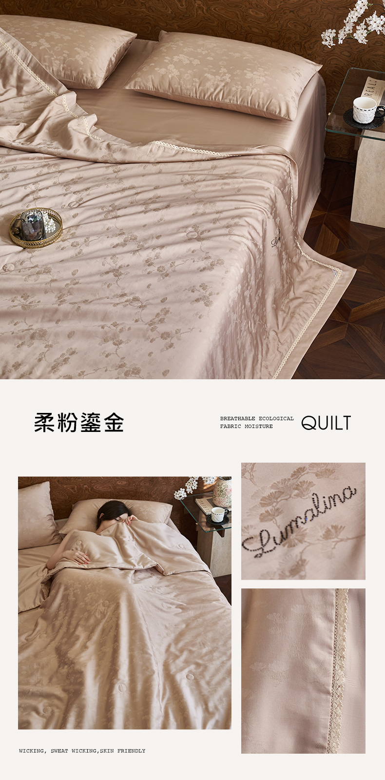 莱福仕 2022新款60提花李官奇大豆子母被 爱丽丝-裸粉,爱丽丝-裸粉