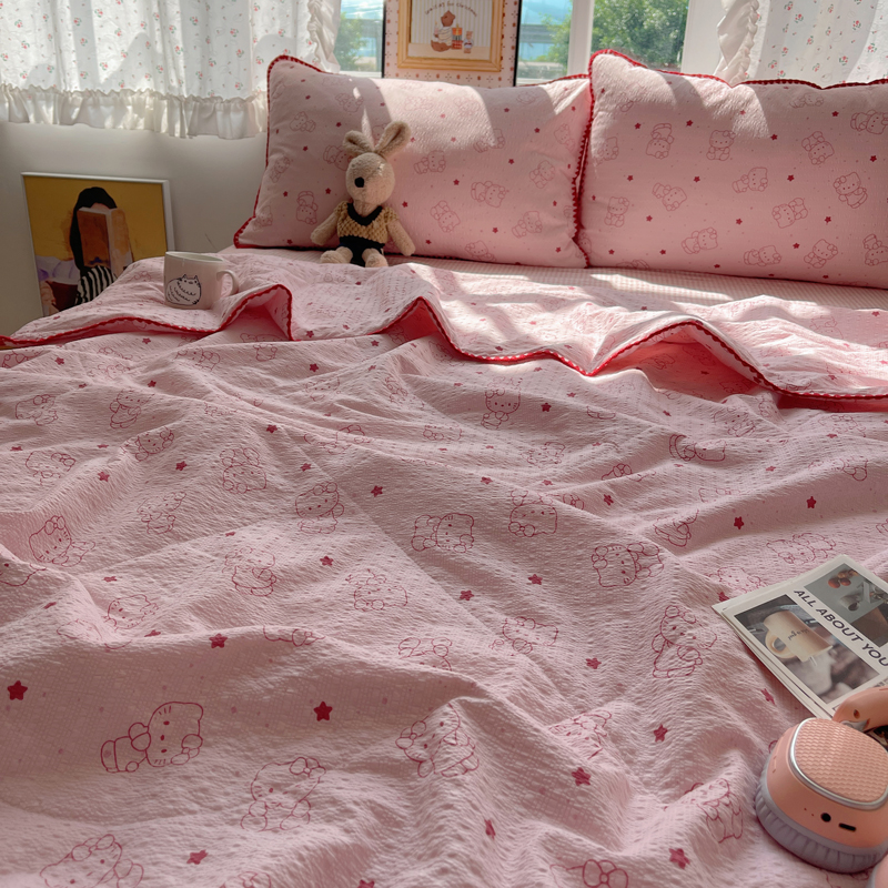 (总)禾沐 2026新款泡芙纱三角针床盖夏被四件套,波点,粉色小心心,格格心,旧街星星,咖豹纹,兰爱心,描线小猫粉,描线小猫咖,浅川纹,森林描绘,田园兔,星光凯蒂,只闻花香,紫陌,KT 猫