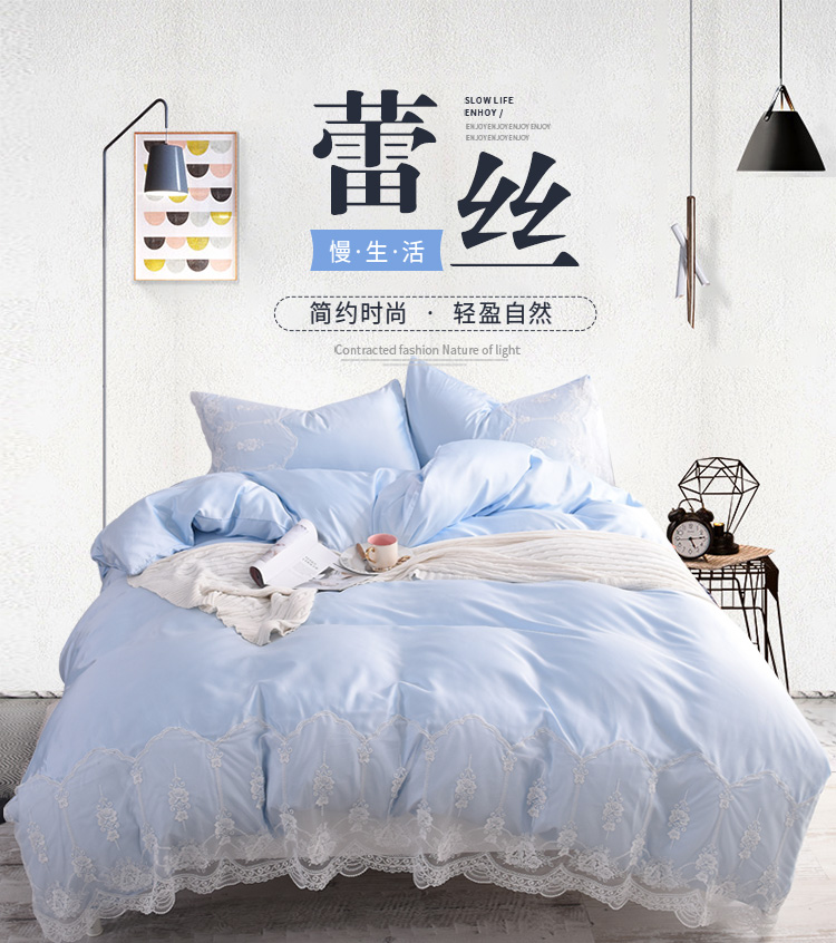 艾米家居 水洗真丝四件套纯真系列 浅蓝色