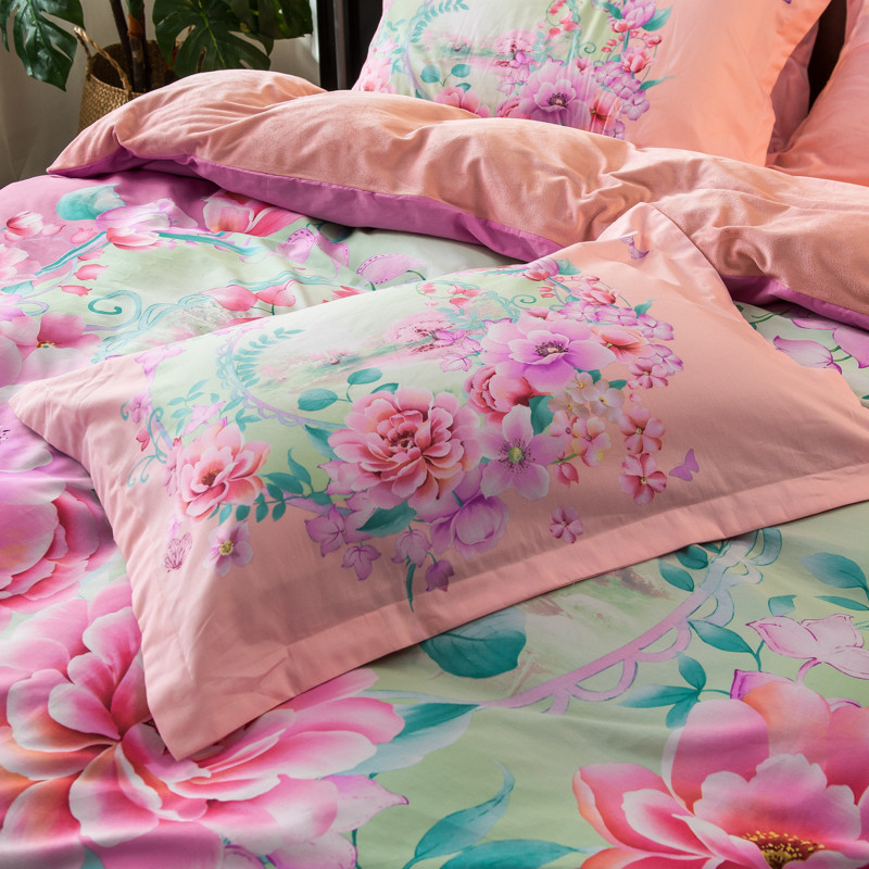 (总)馨蕊家居 2025新款春夏新品天丝印花80SLF奥地利兰精天丝四件套-朵美,天丝朵美-蔷薇粉,天丝朵美-氧气绿