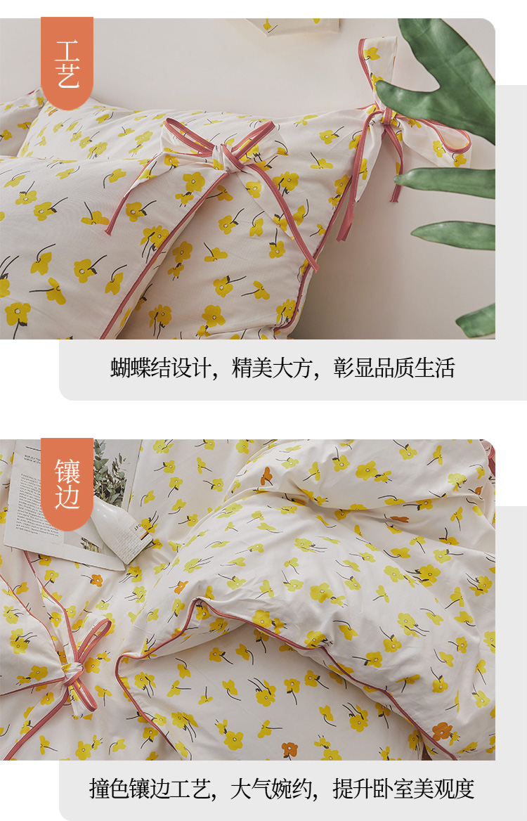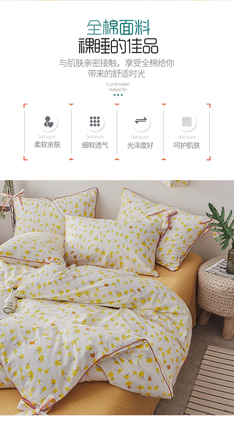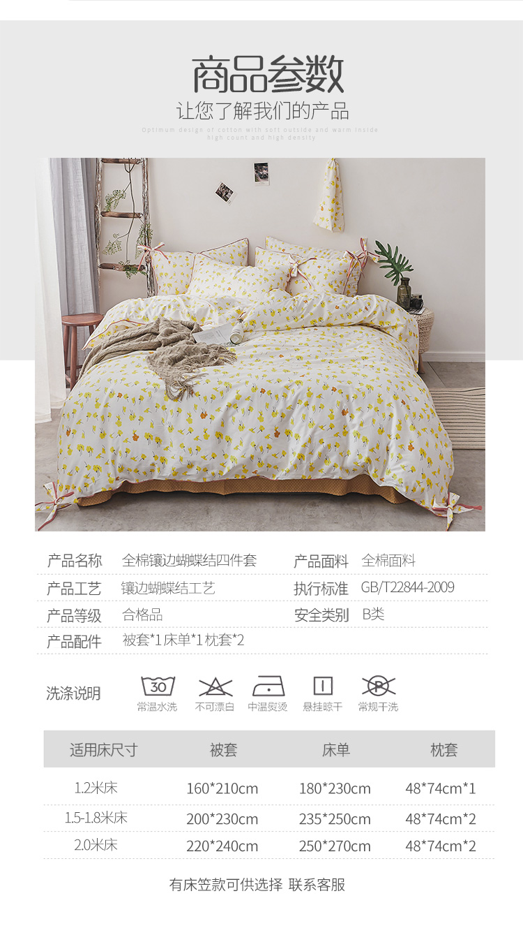 商品名称:棉眠 2019春夏新款全棉镶边蝴蝶结四件套 床单款 花开