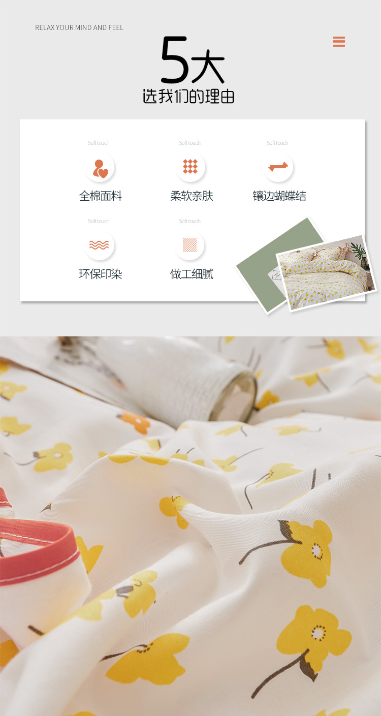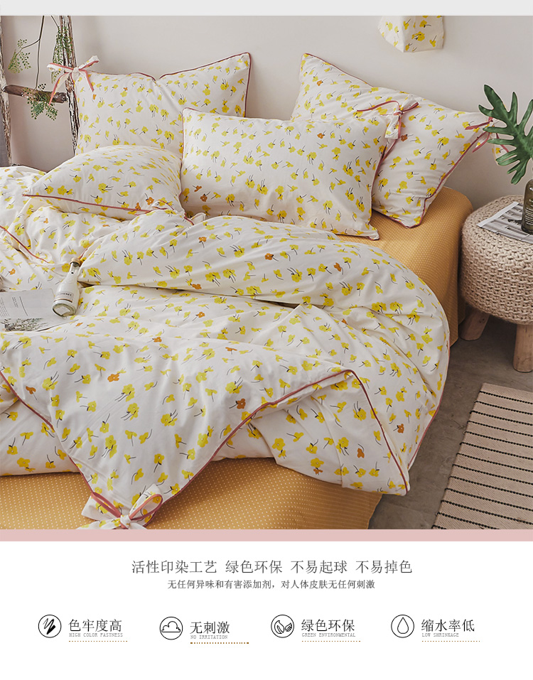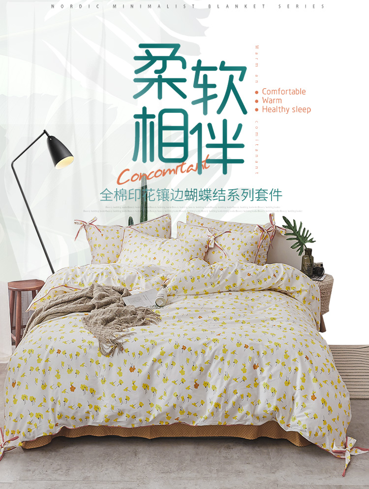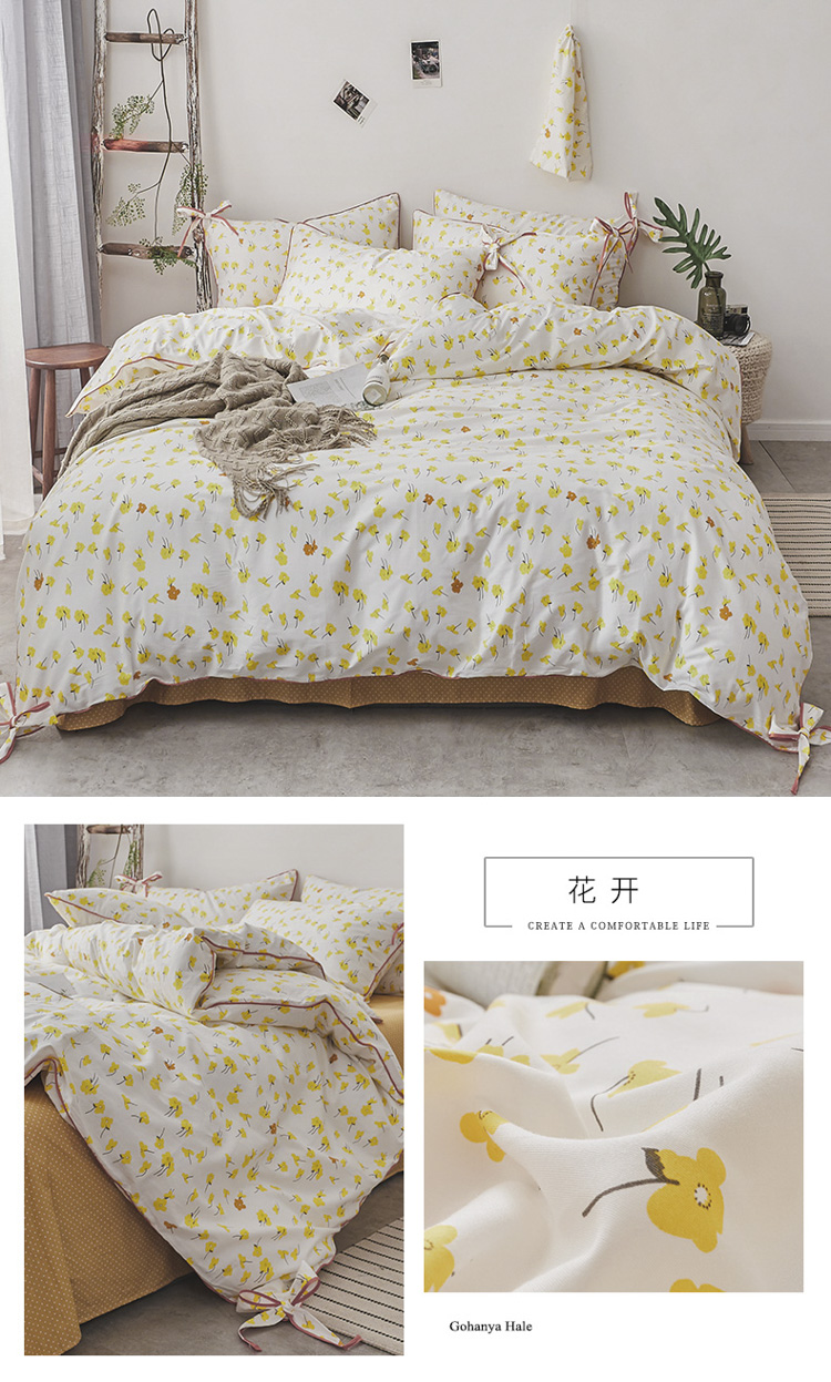 商品名称:棉眠 2019春夏新款全棉镶边蝴蝶结四件套 床单款 花开