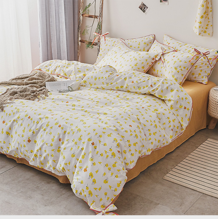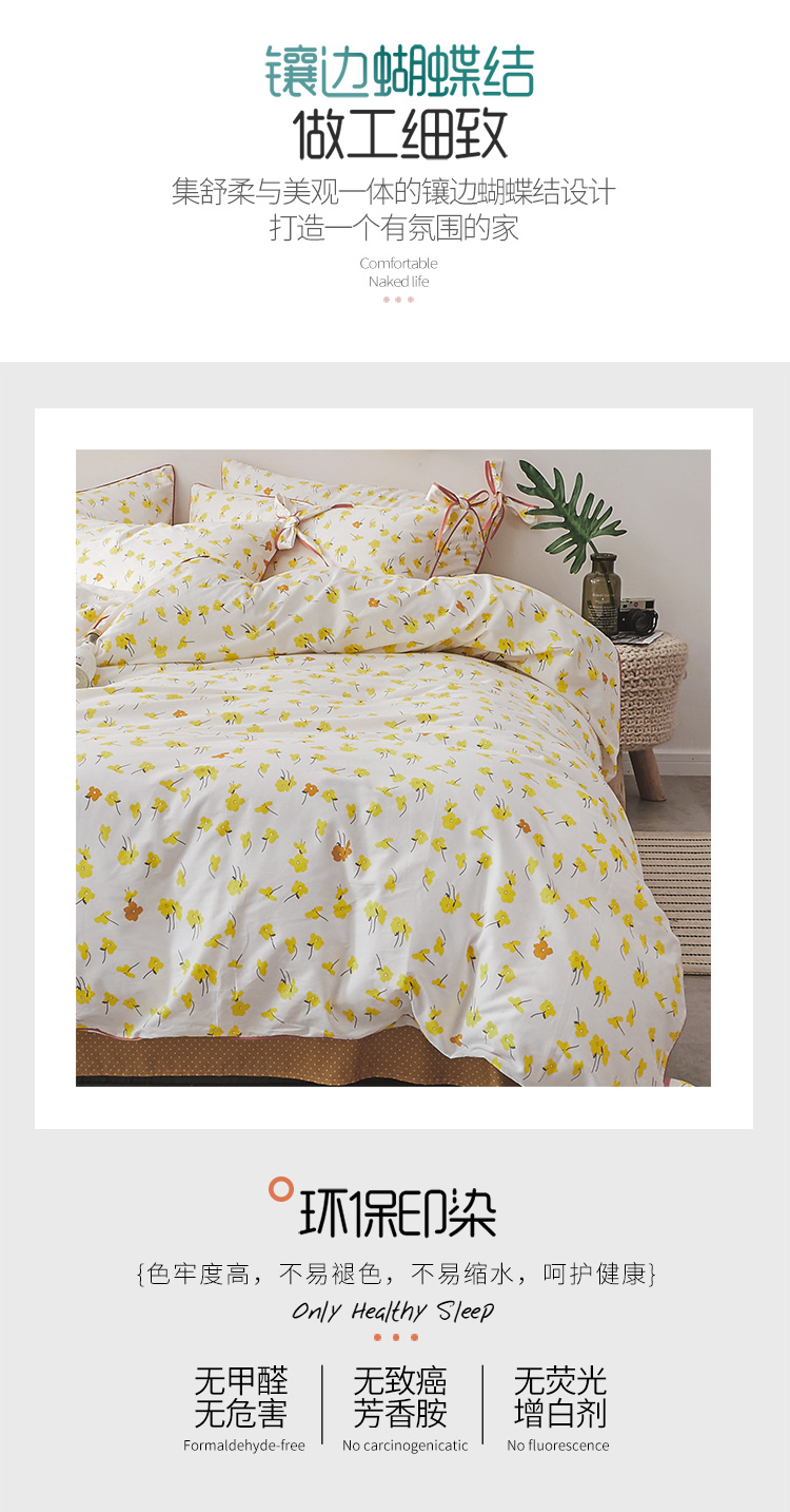 棉眠 2019春夏新款全棉镶边蝴蝶结四件套 床单款 花开
