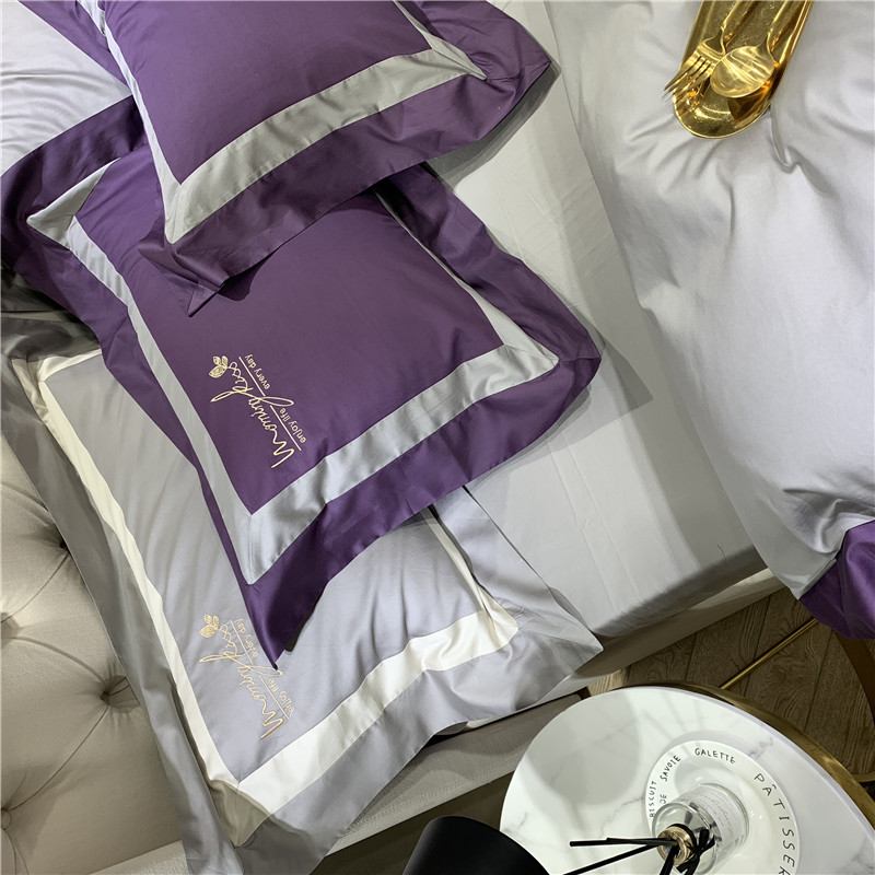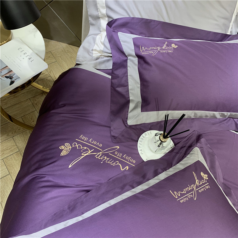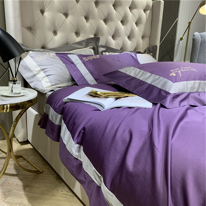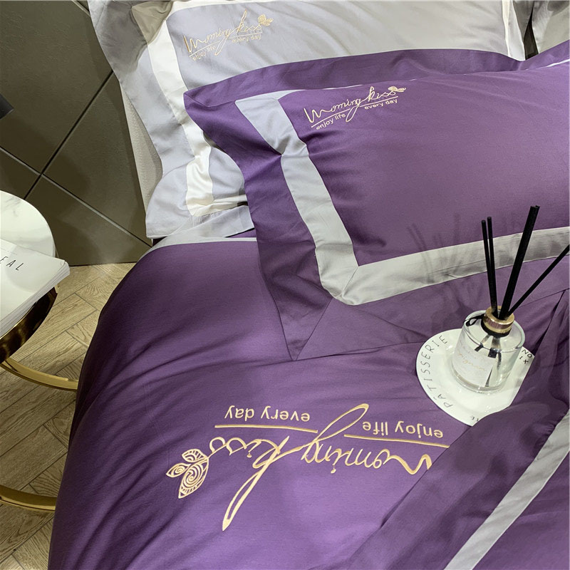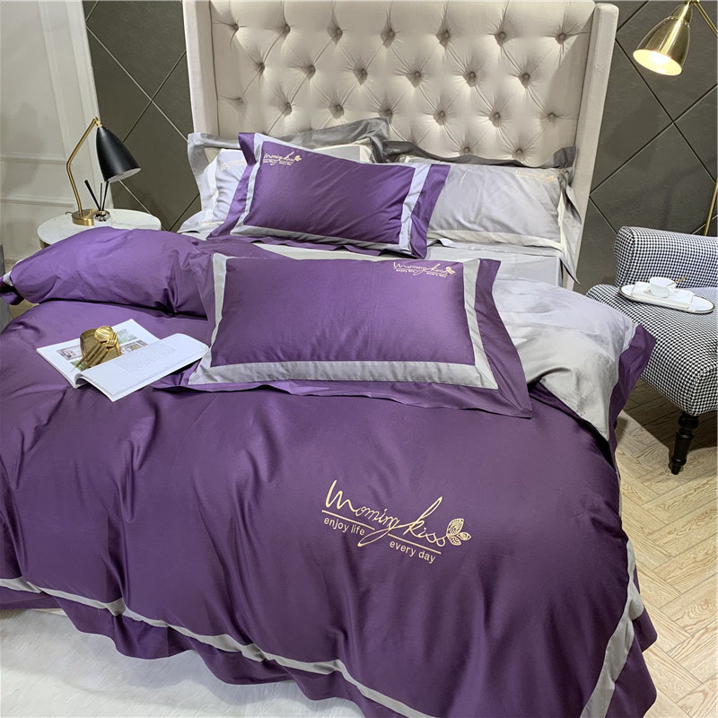 太古汇 2019新款纯色拼色绣花四件套 石青紫