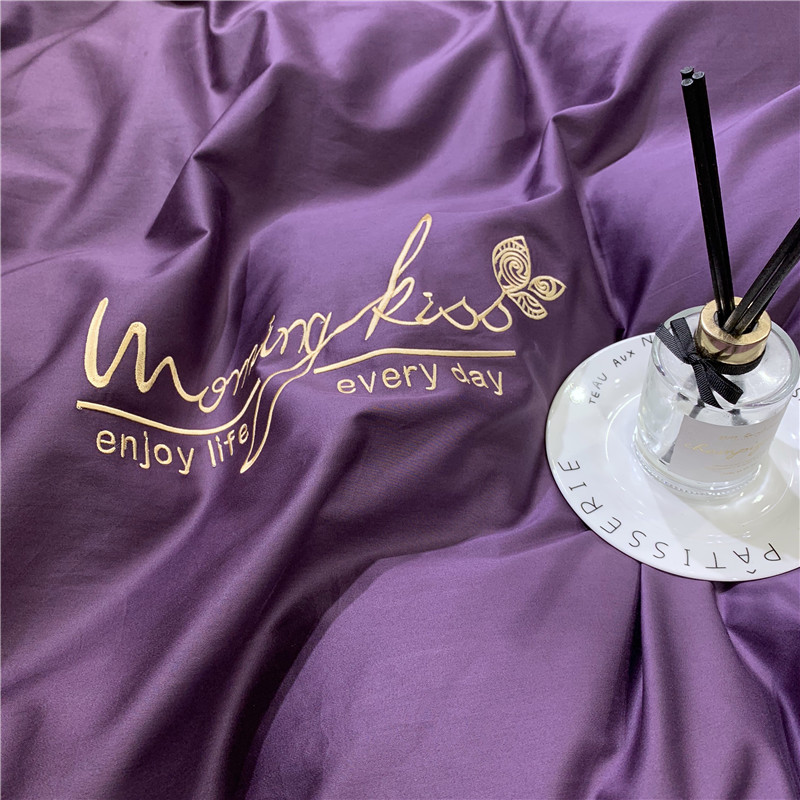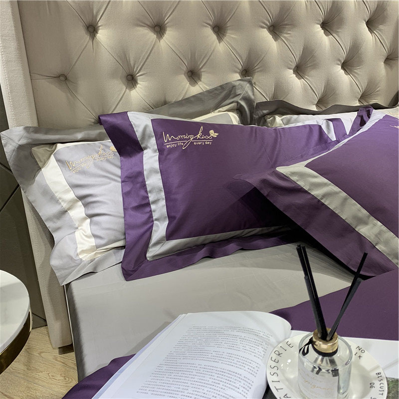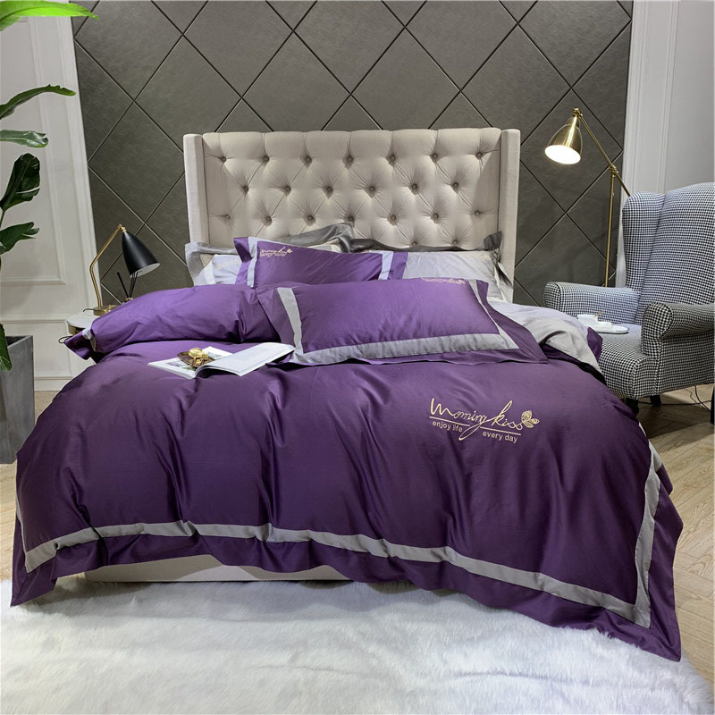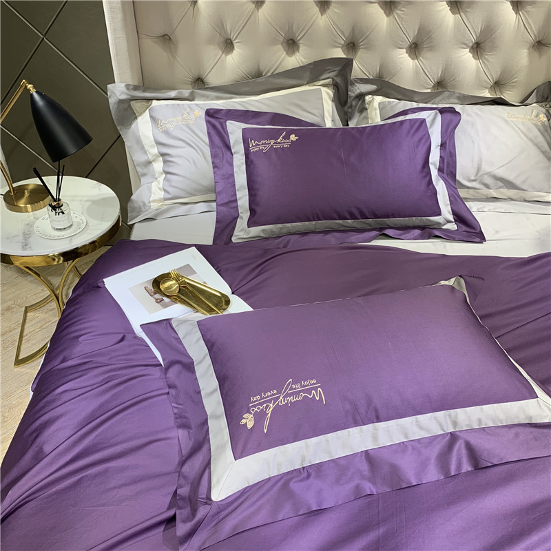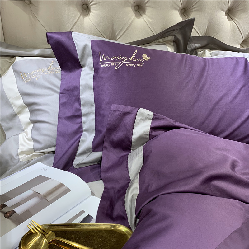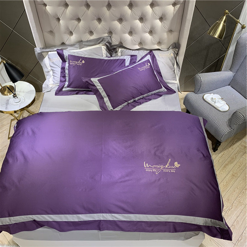 太古汇 2019新款纯色拼色绣花四件套 石青紫