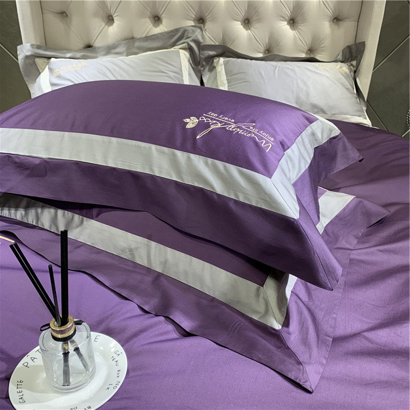 商品名称:太古汇 2019新款纯色拼色绣花四件套 石青紫