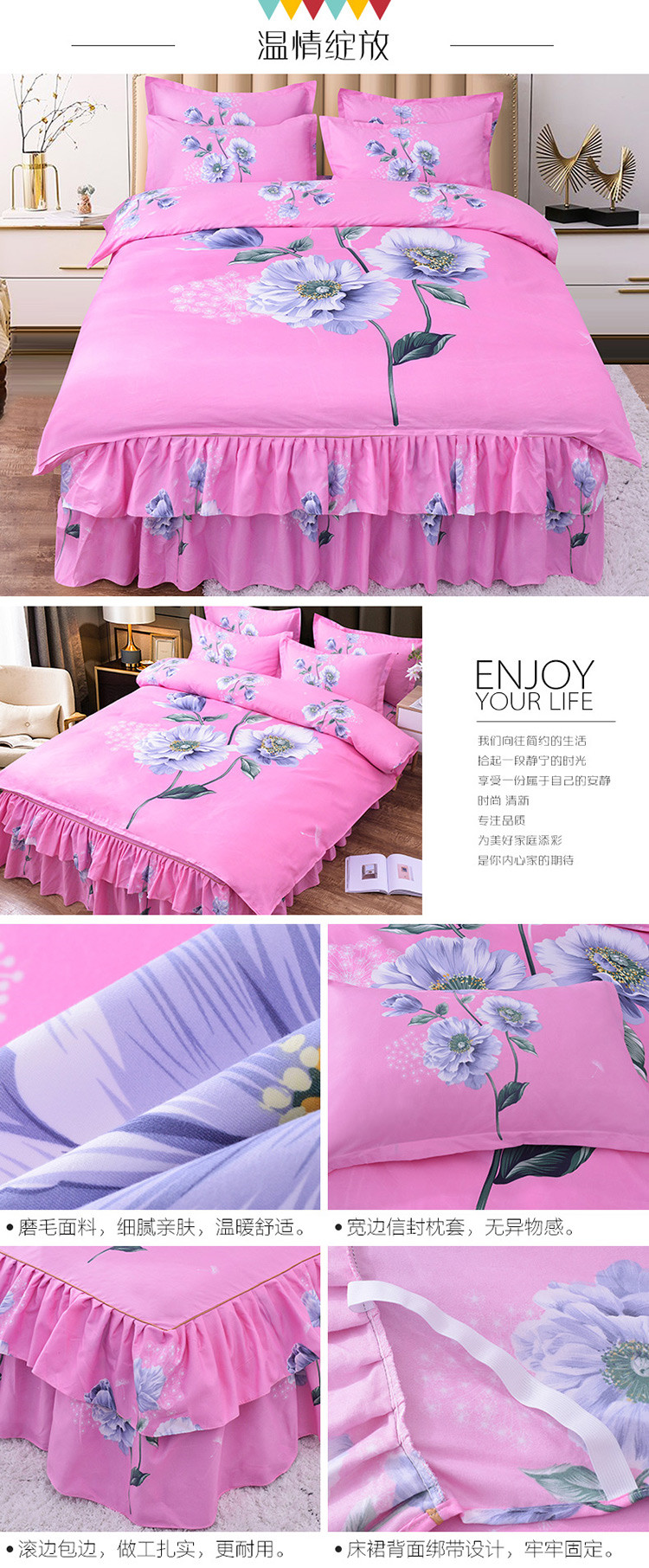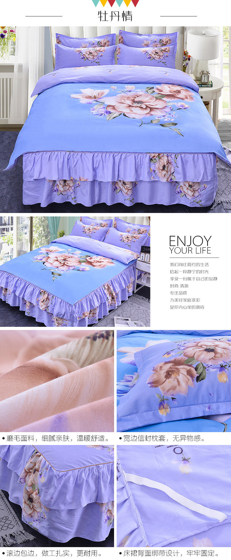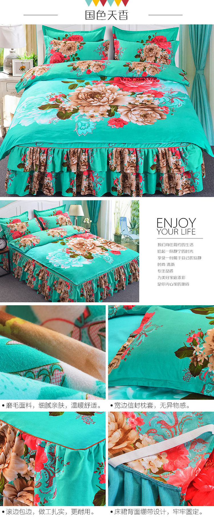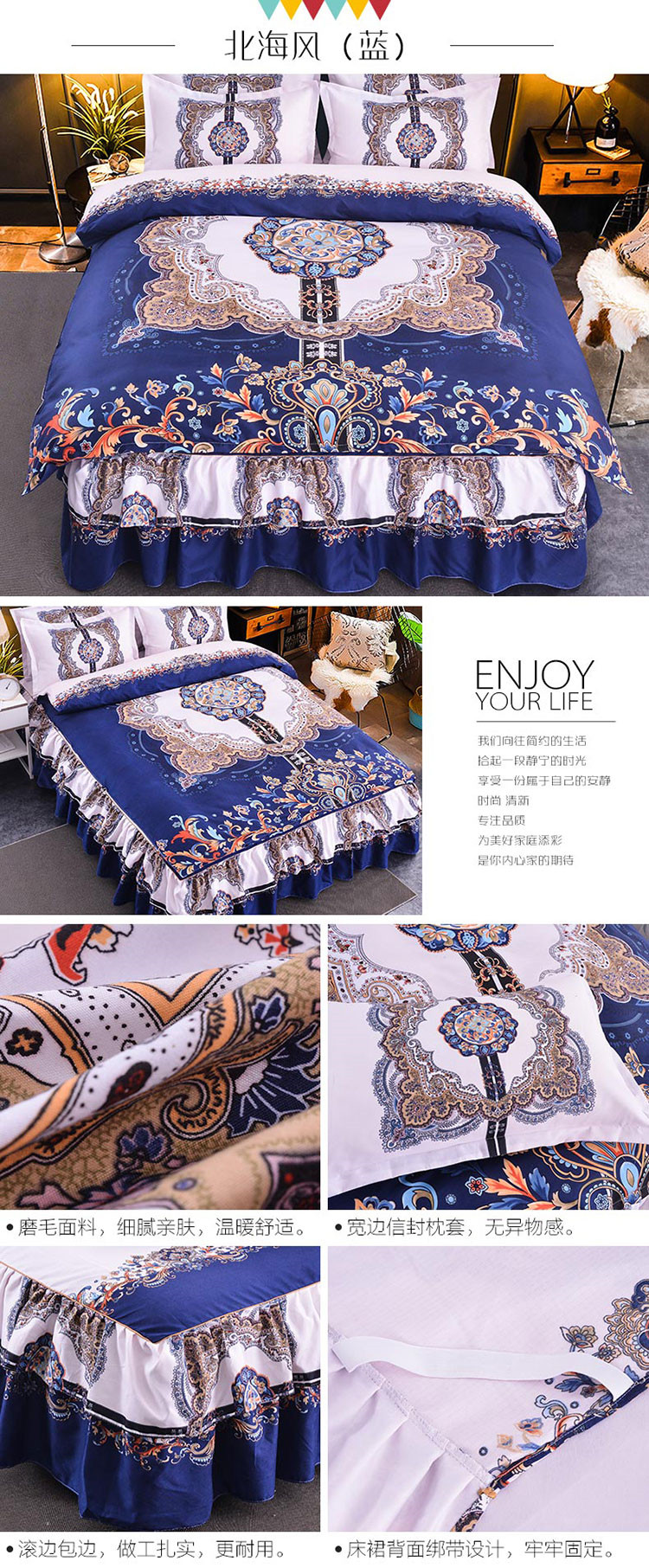 (总)梦柏家纺 2019新款加厚磨毛大版四件套床裙款