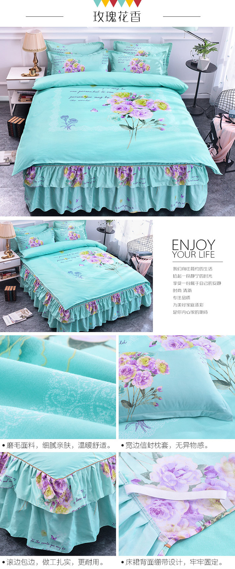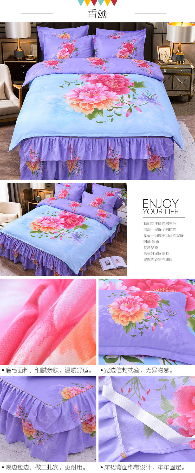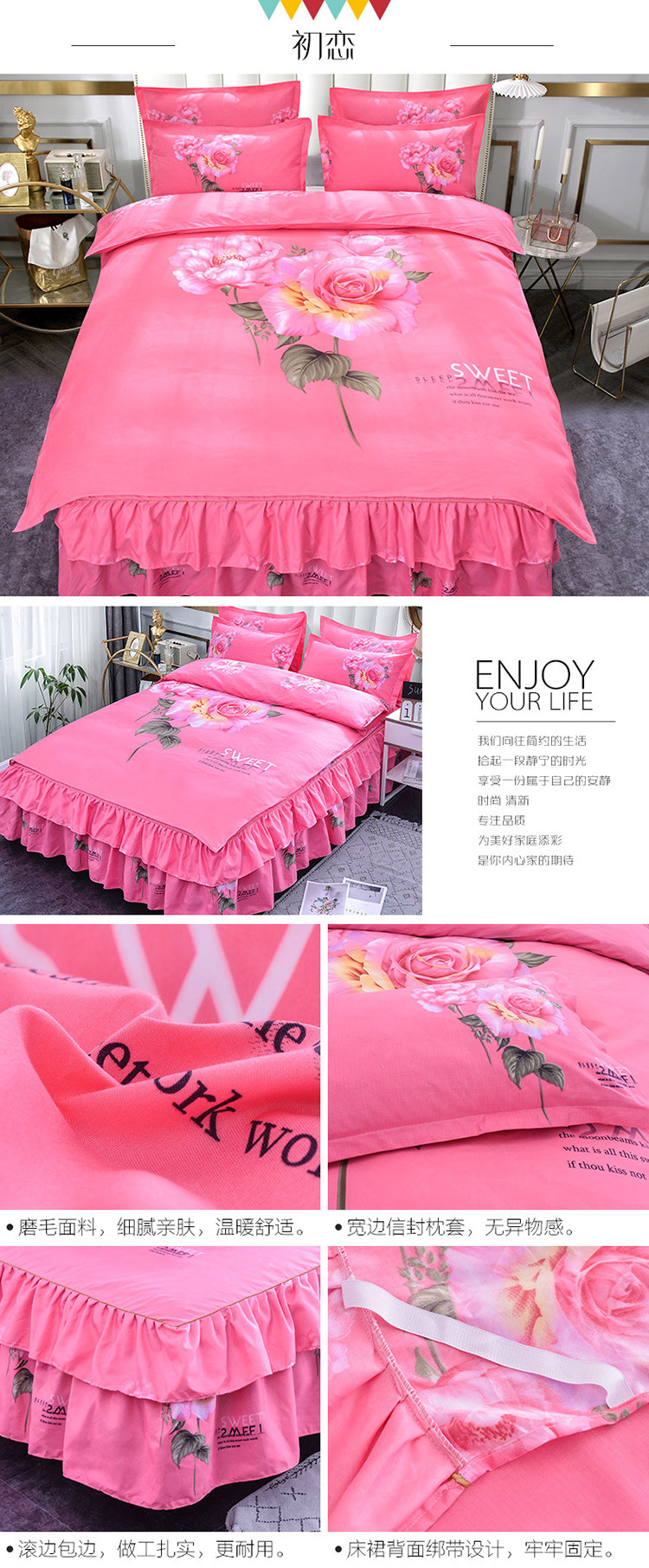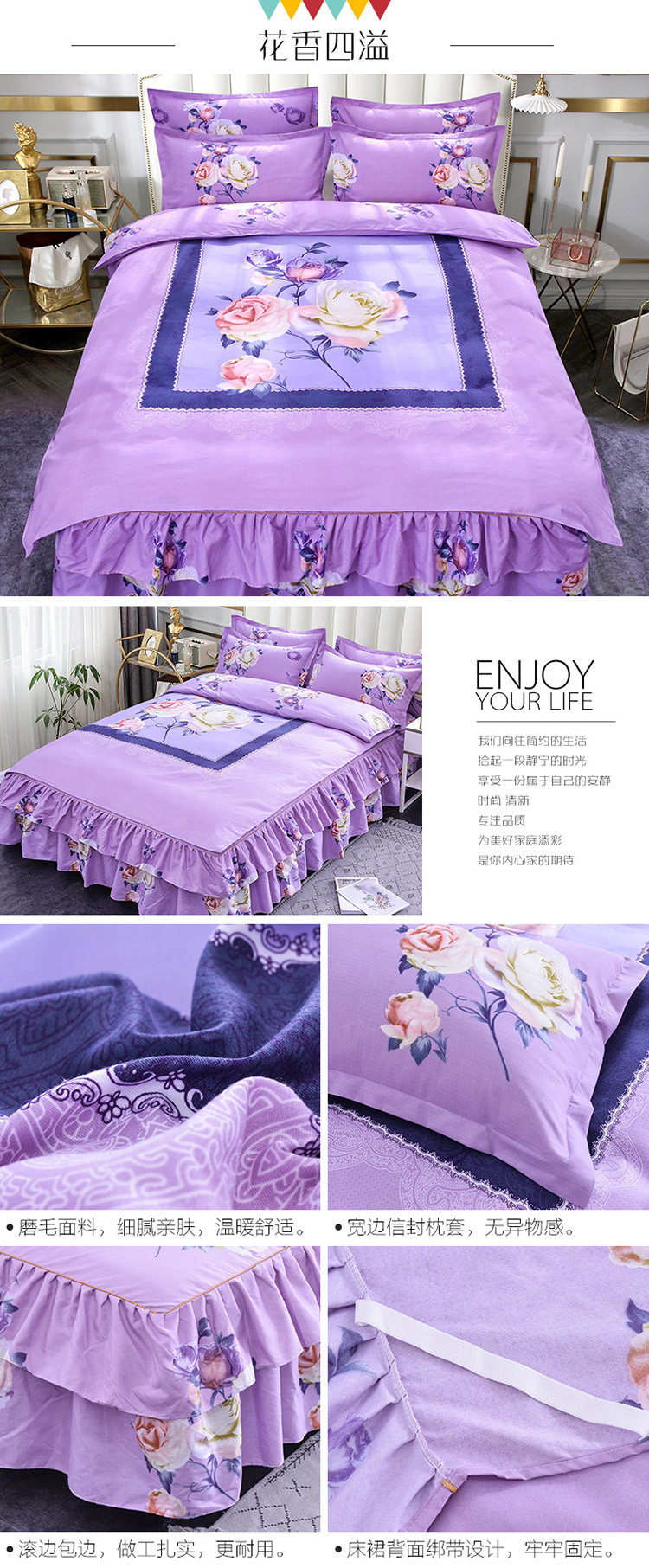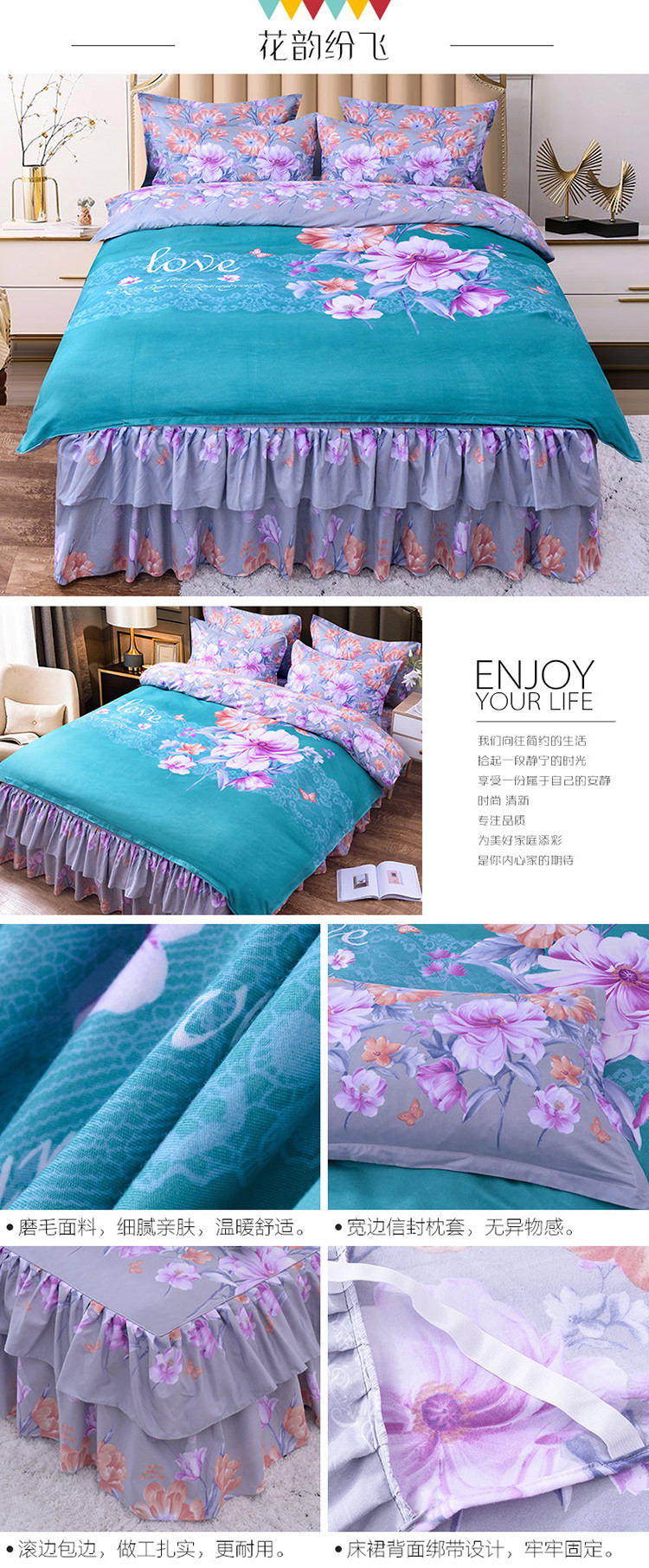 (总)梦柏家纺 2019新款加厚磨毛大版四件套床裙款