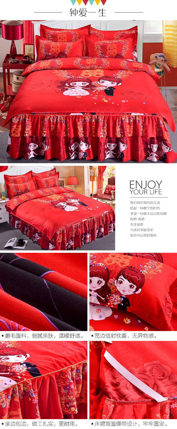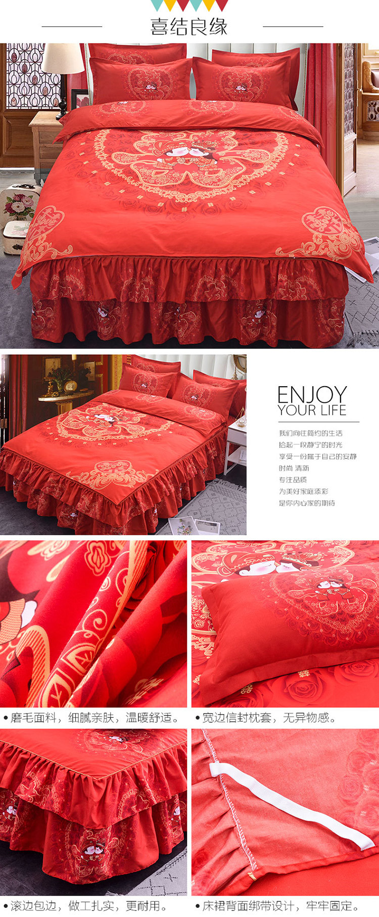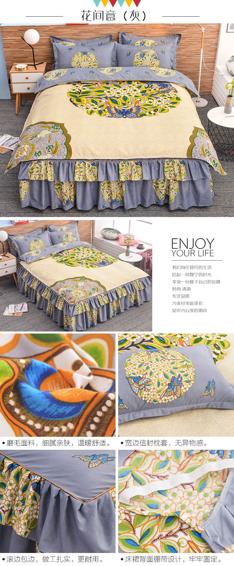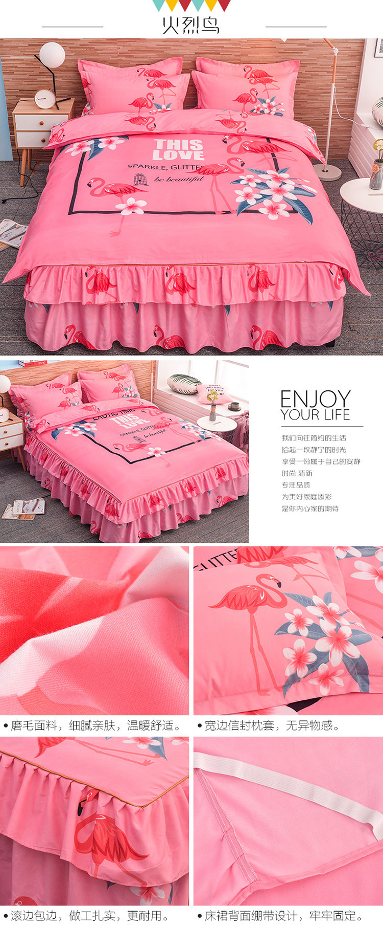 (总)梦柏家纺 2019新款加厚磨毛大版四件套床裙款
