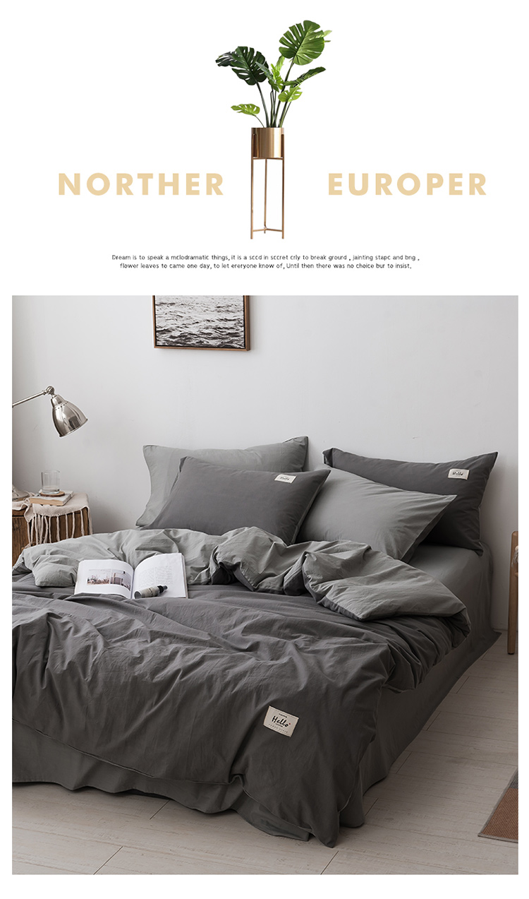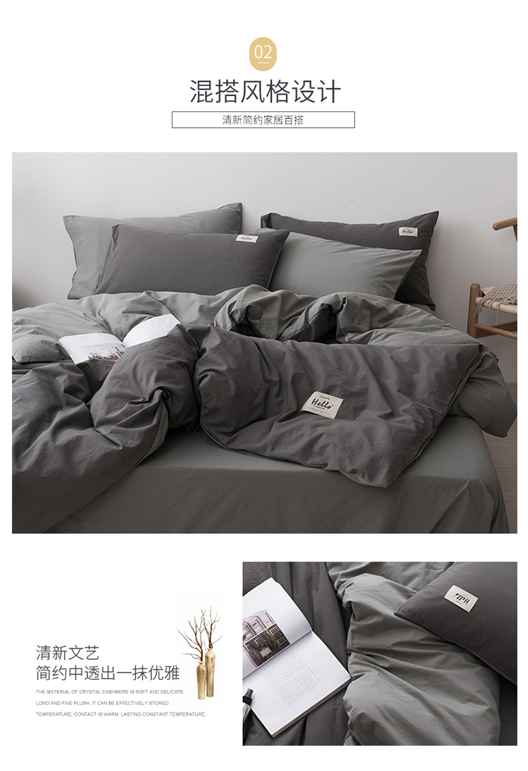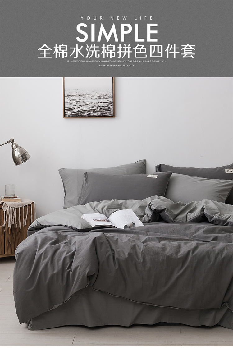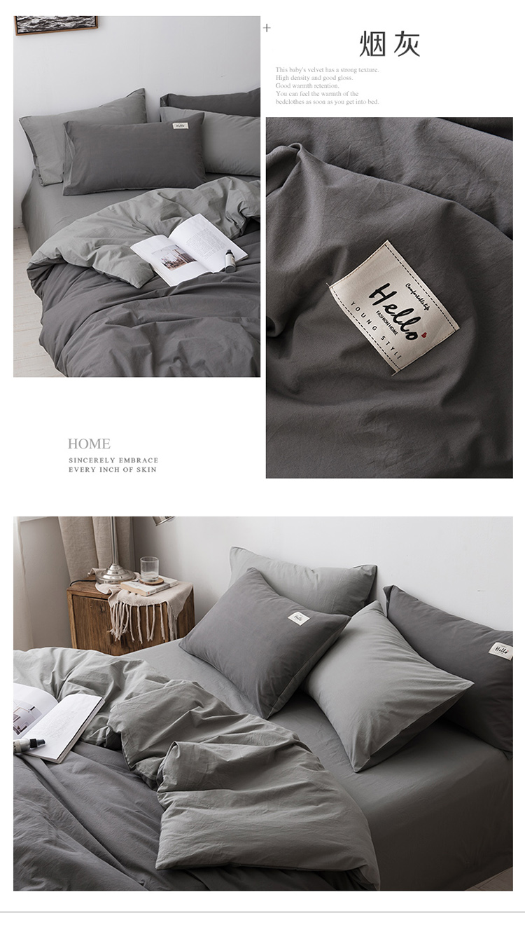 朗莎家纺 2019新款水洗棉四件套床单款 烟灰