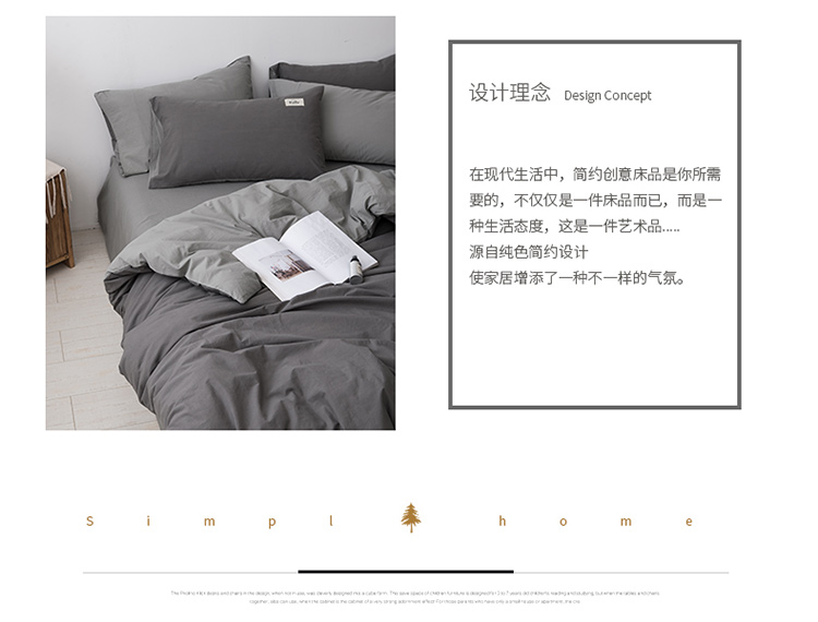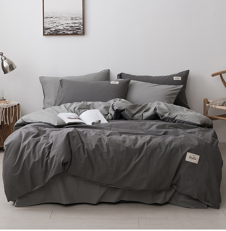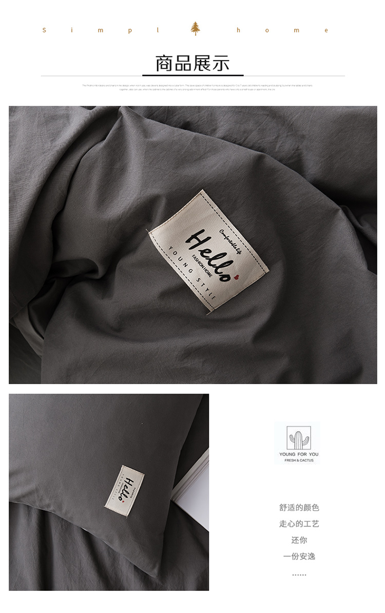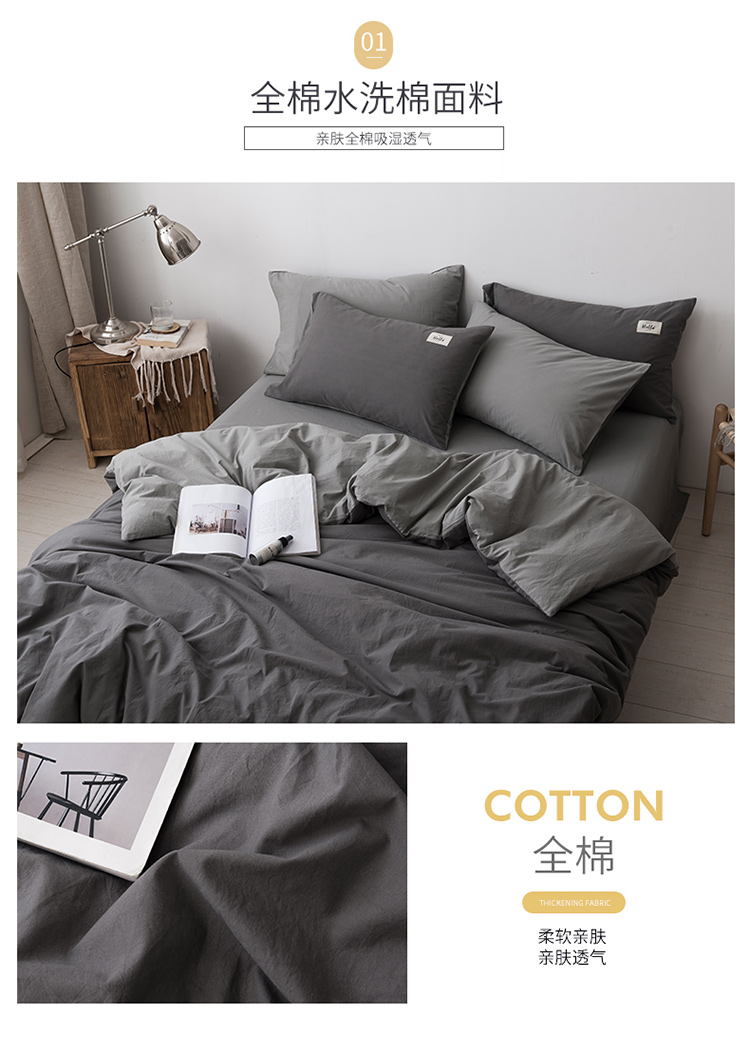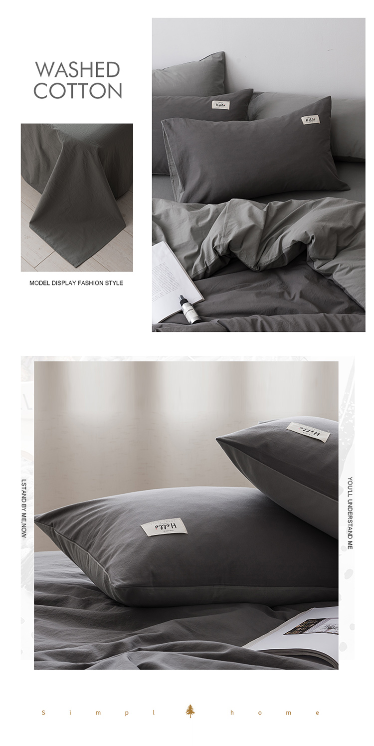 朗莎家纺 2019新款水洗棉四件套床单款 烟灰