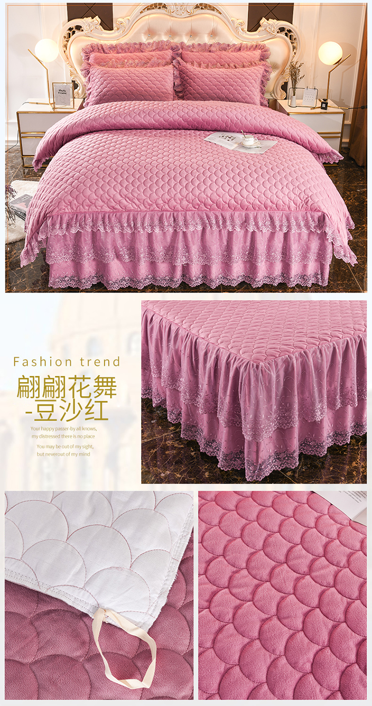 (总)恒爱 2022秋冬水晶绒翩翩花舞夹棉床裙四件套,大红色,豆沙红,橄榄绿,公主粉,桔色,咖啡色,孔雀绿,拉菲红,罗兰紫,玫红色,美人玉,米白色,米驼色,抹茶绿,浅灰色,紫色
