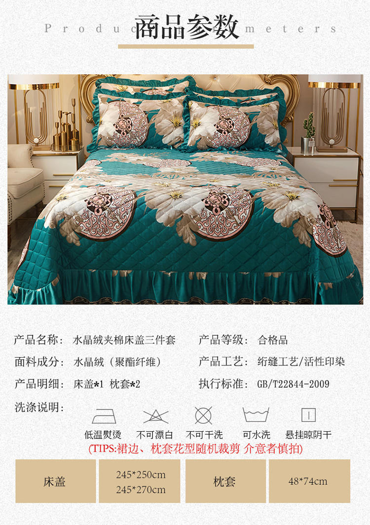 商品名称:宜凡家纺 2019水晶绒床盖三件套 镜花缘