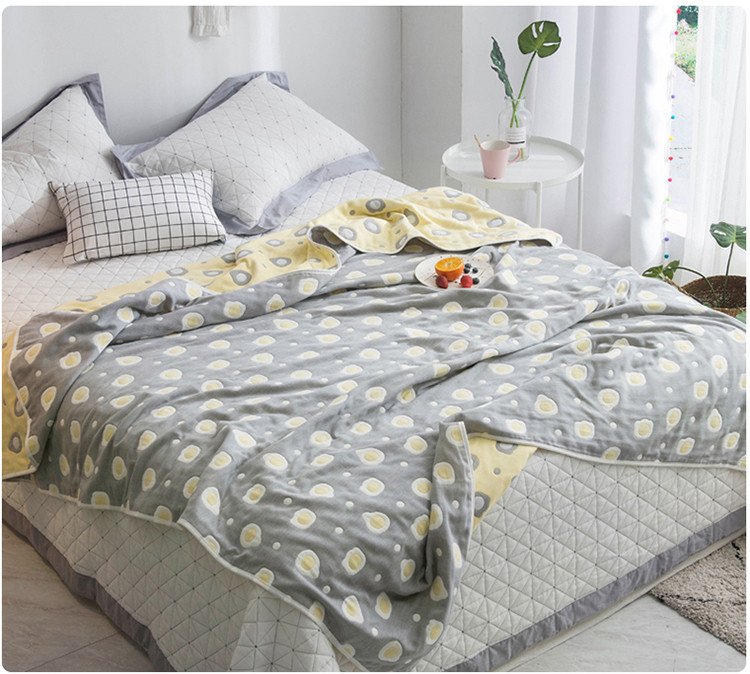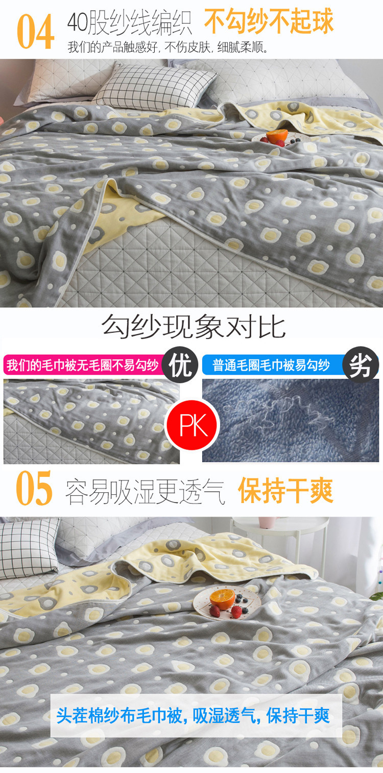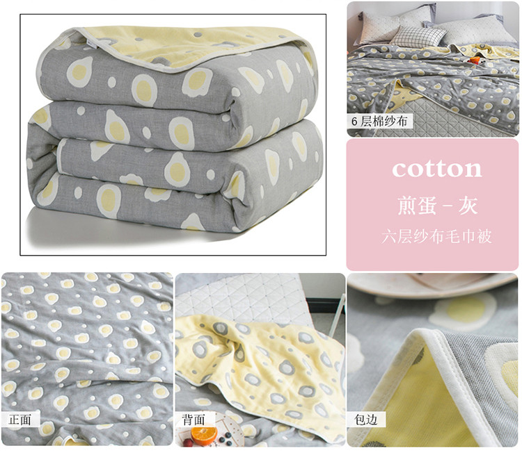 商品名称:朴尔家纺 六层全棉纱布毛巾被 煎蛋-灰