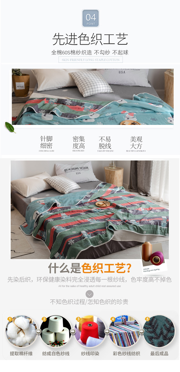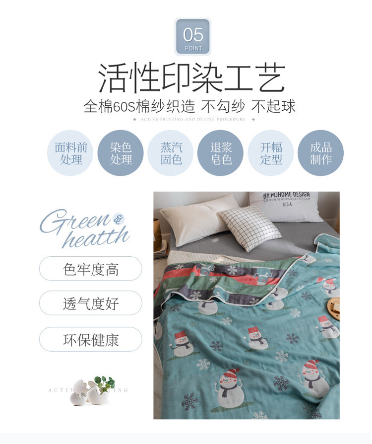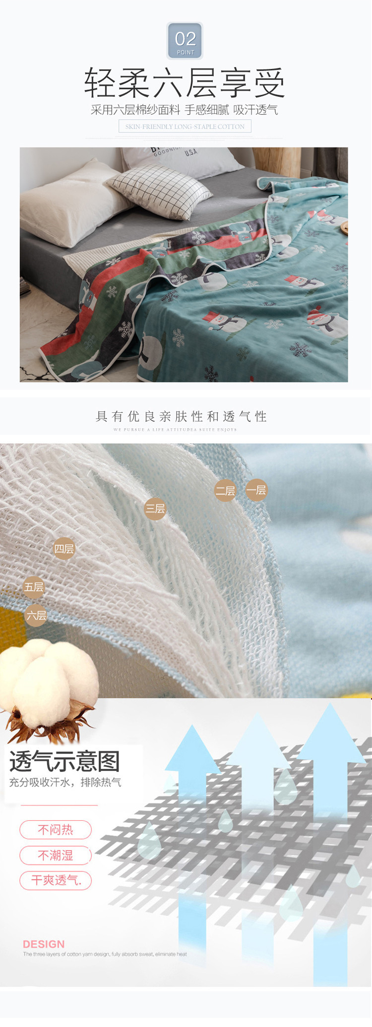 朴尔家纺 六层全棉纱布毛巾被 雪人兰