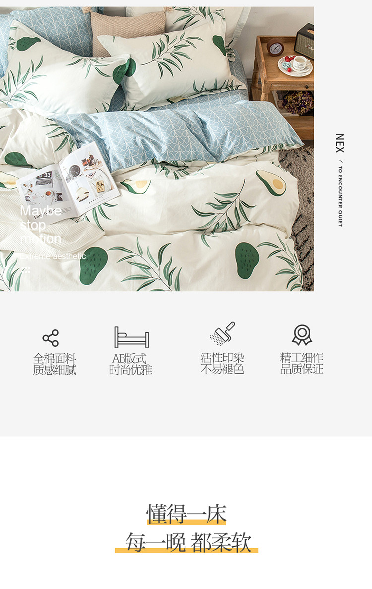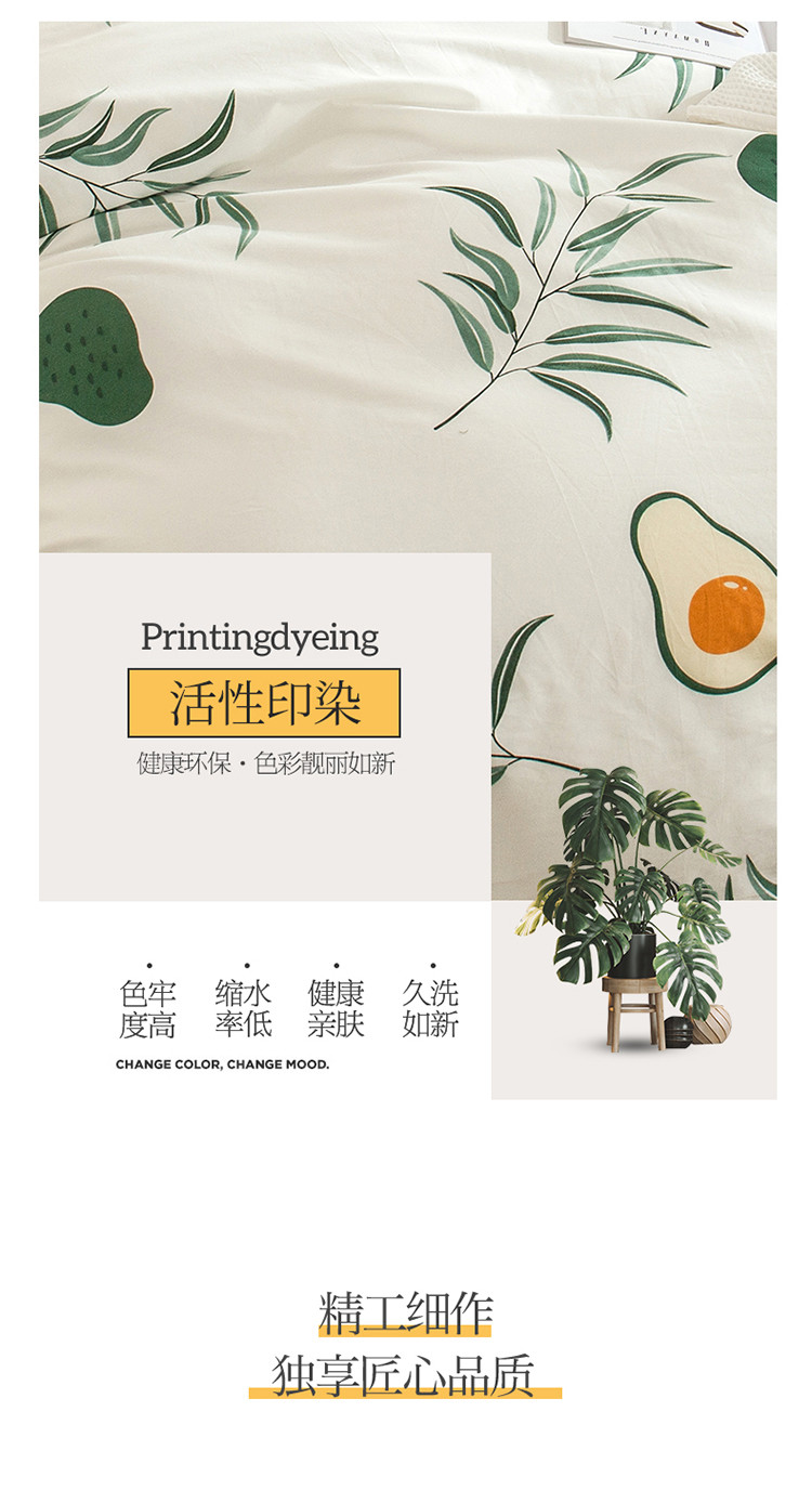 当前位置: 91家纺网 > 商品网购 > 床品套件 > 四件套 > 全棉普通四件套 > 宝齐莱家纺 2020新款13372印花小清新四件套 牛油果