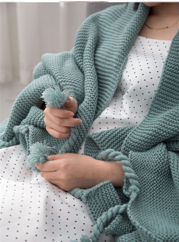 暖绵绵 新品映曼毯子针织毯子线毯 湖青