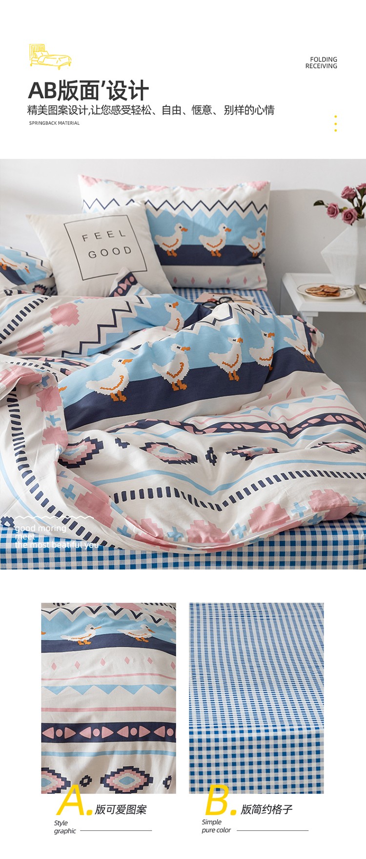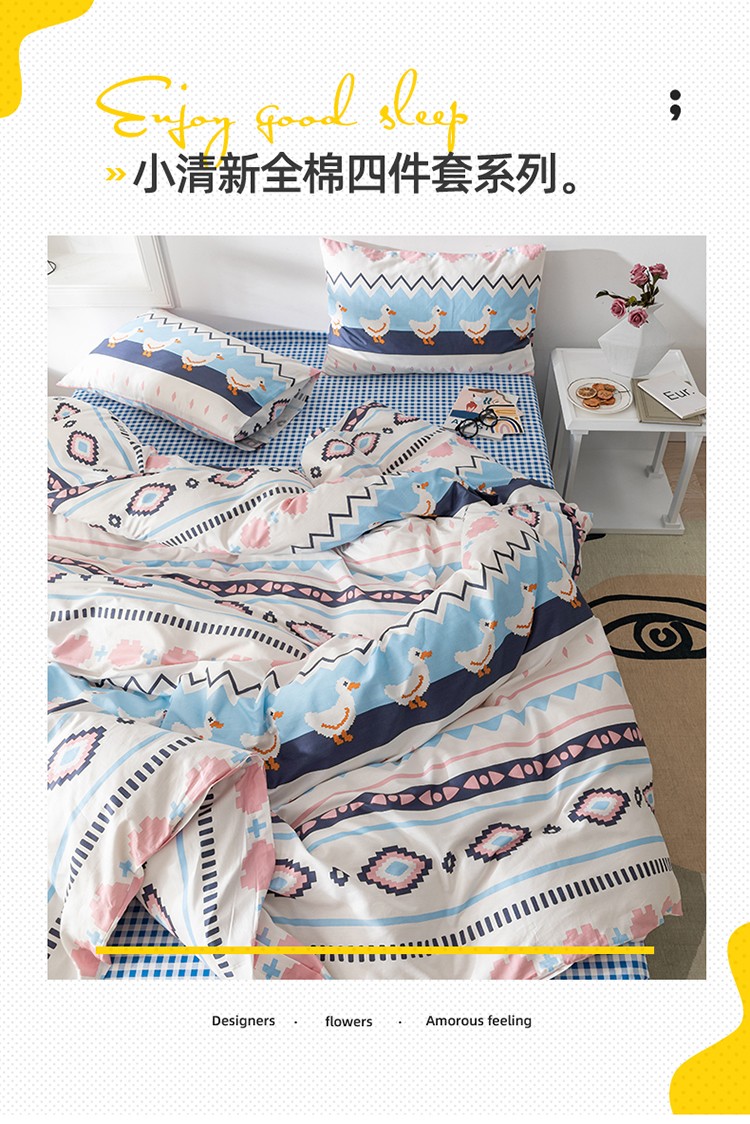 珺柔家纺 2020新款13070全棉四件套 波西小鸭