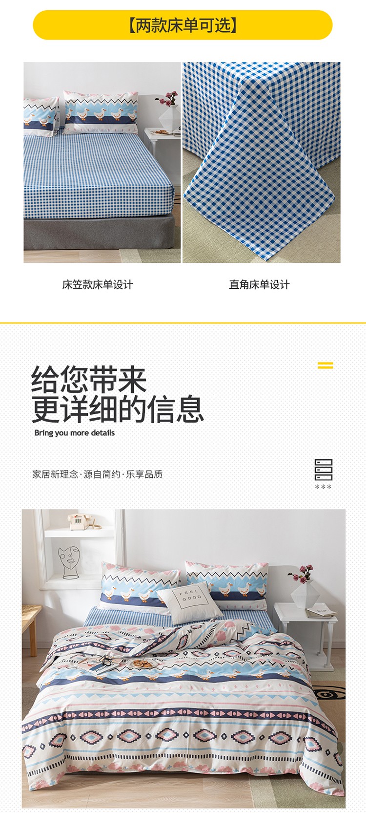 (总)2023新款40支纱全棉13070锁边工艺款四件套系列,格子爱心,嘉兰,咖条,朗尼,小兔兔,星星兔
