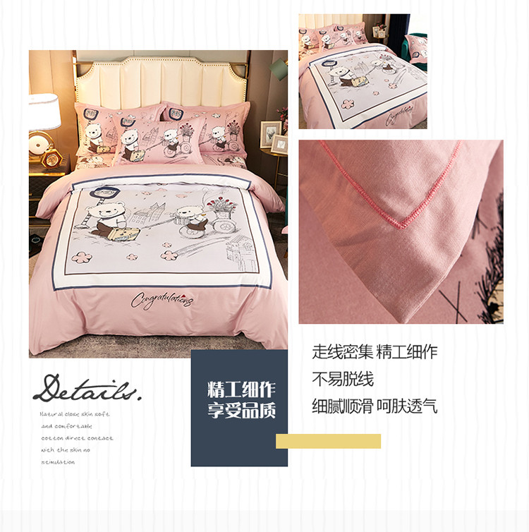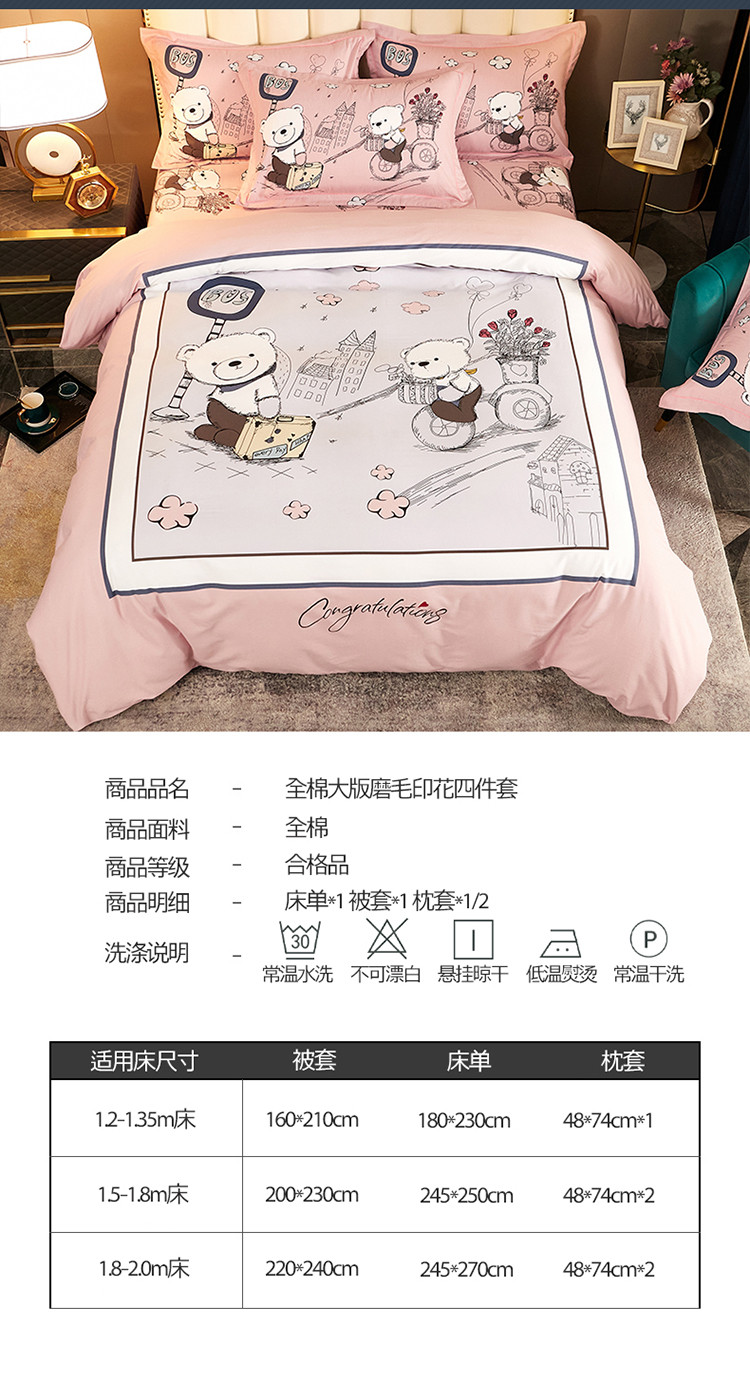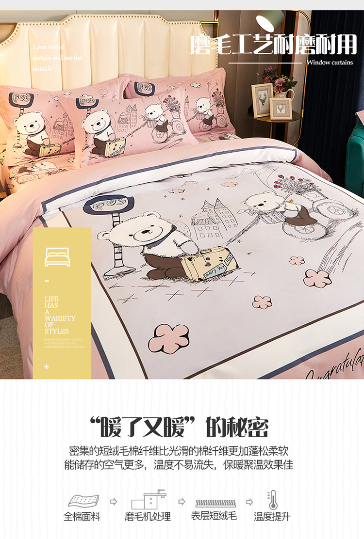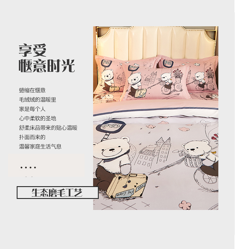 商品名称:雲归梦 2020新款全棉生态磨毛大版四件套 快乐小熊-粉