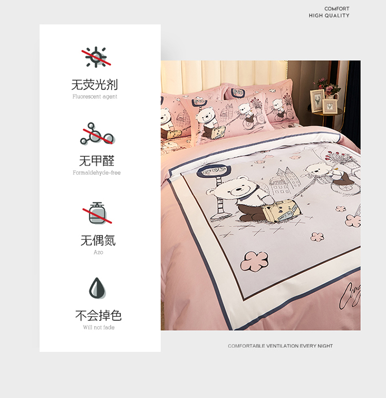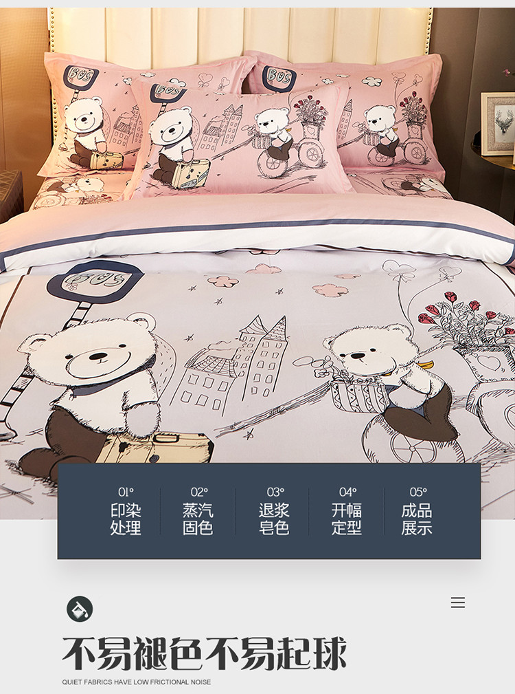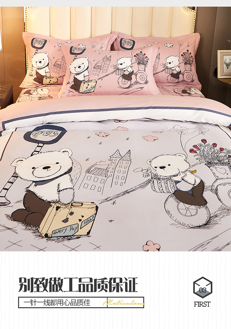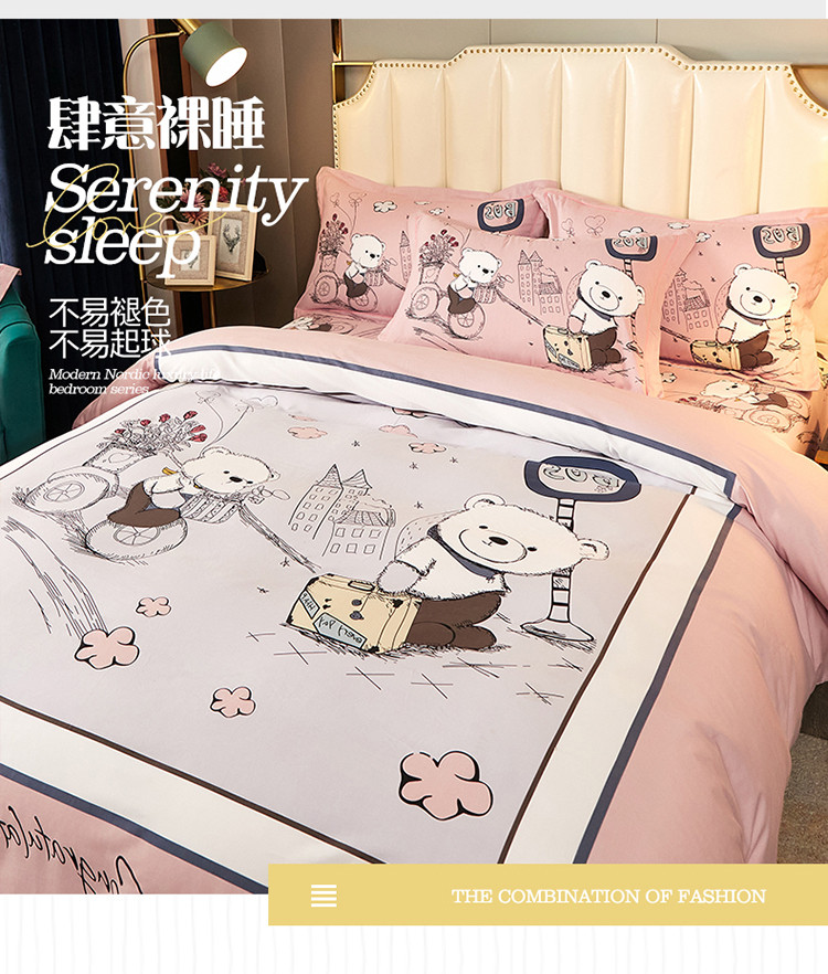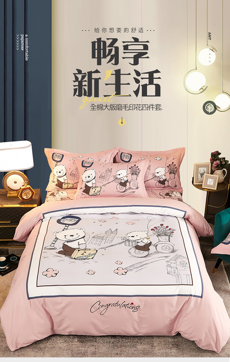 商品名称:雲归梦 2020新款全棉生态磨毛大版四件套 快乐小熊-粉