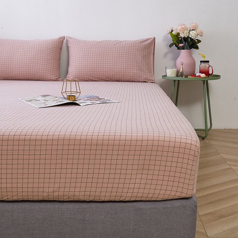 久典家居 2020新款水洗棉单品床笠 京都小粉格