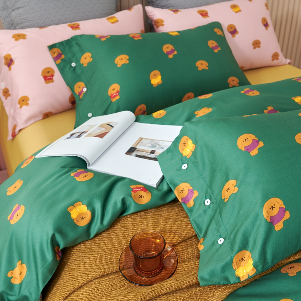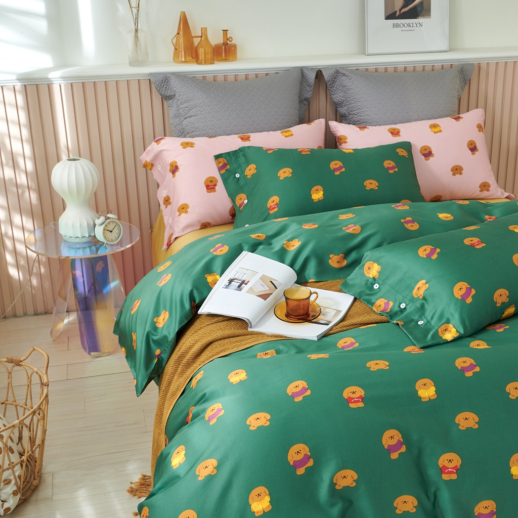 优然居 2020新款60S长绒棉活性印花四件套 饼干熊绿
