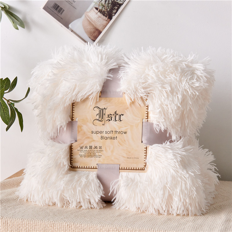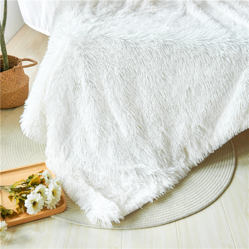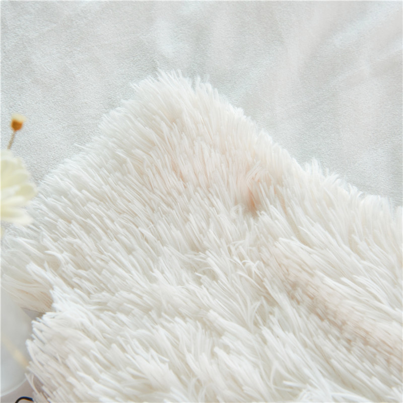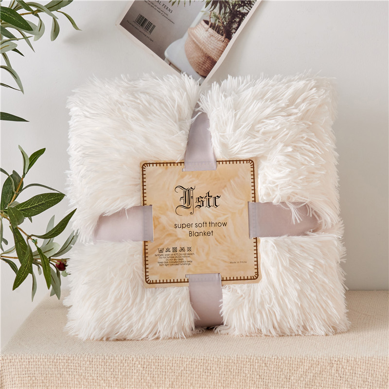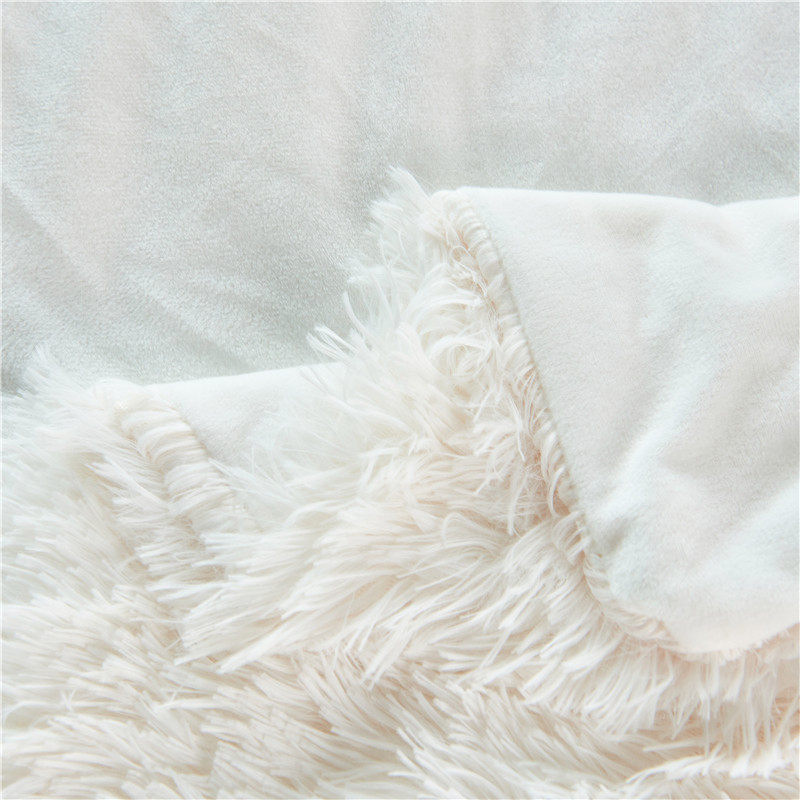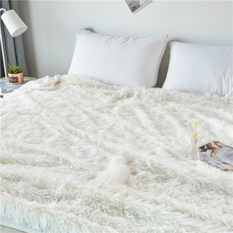 品尚嘉 2025水貂绒毛毯长毛绒法莱绒双层跨境外贸毯子 米白