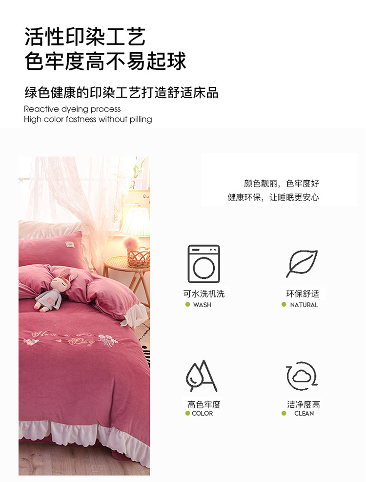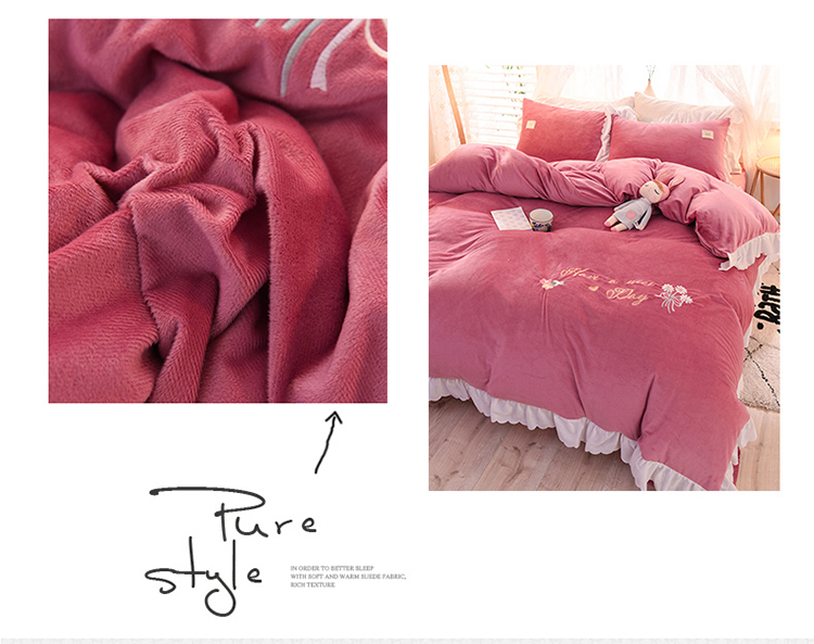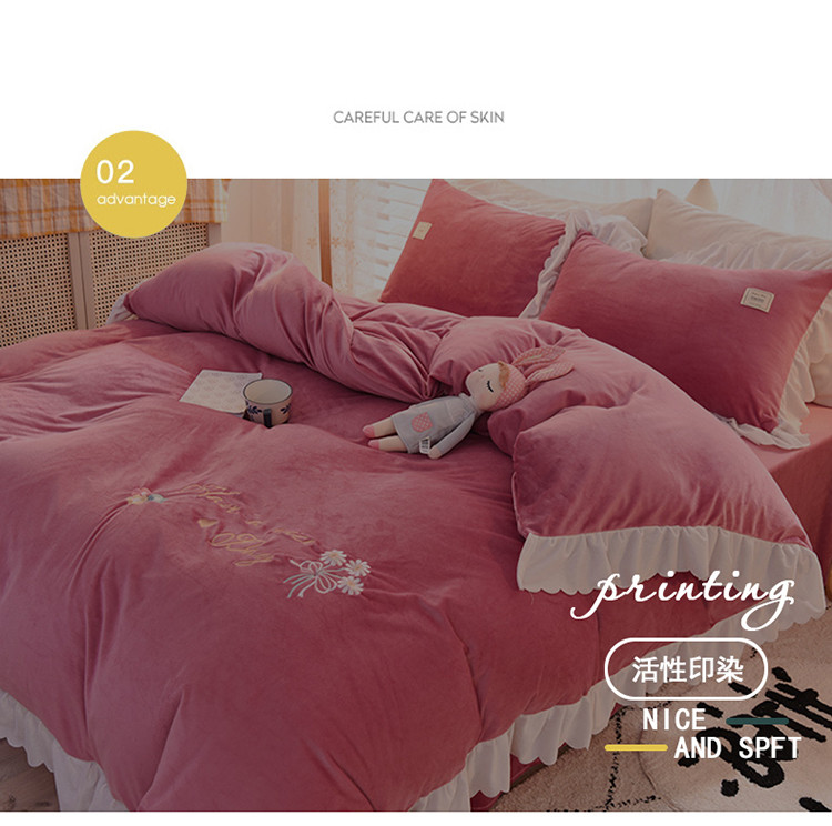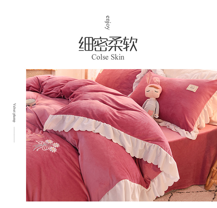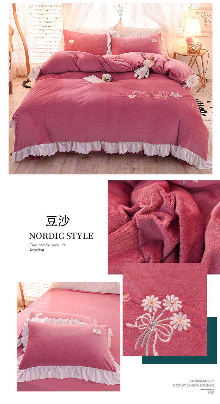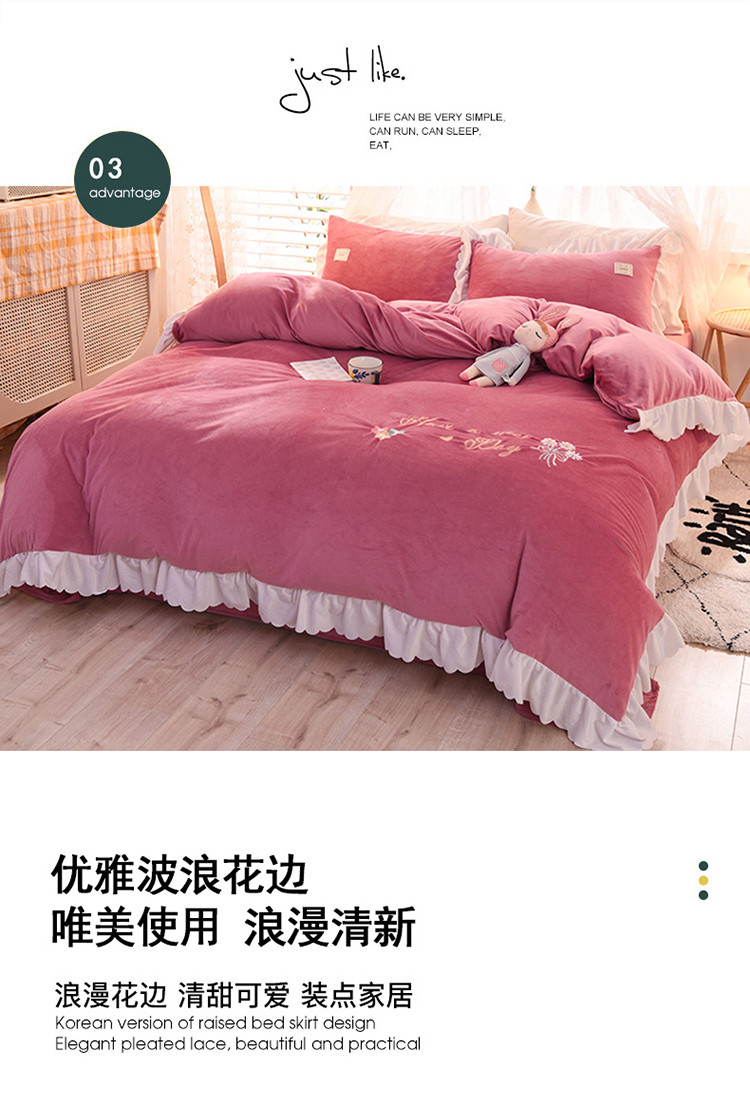 (总)艾米家居 2025秋冬新款浮雕牛奶绒花边四件套,白色,豆沙,粉色