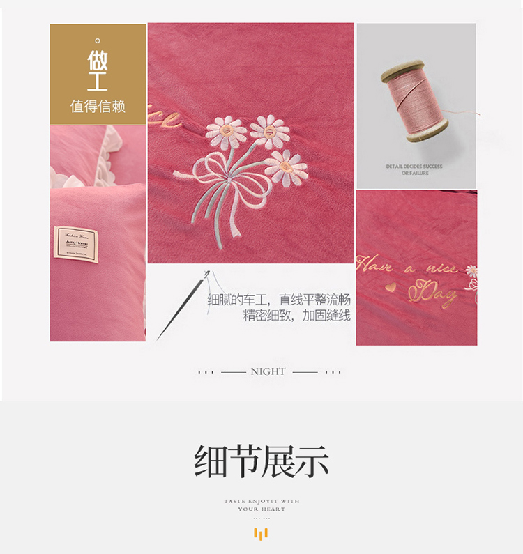 (总)艾米家居 2025秋冬新款牛奶绒泡泡印花花边四件套,豆沙条纹粉,蝴蝶花,太阳花