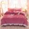 艾米家居 2025新款韩版双层花边轻奢浮雕系列水洗冰丝四件套 豆沙花边,豆沙花边