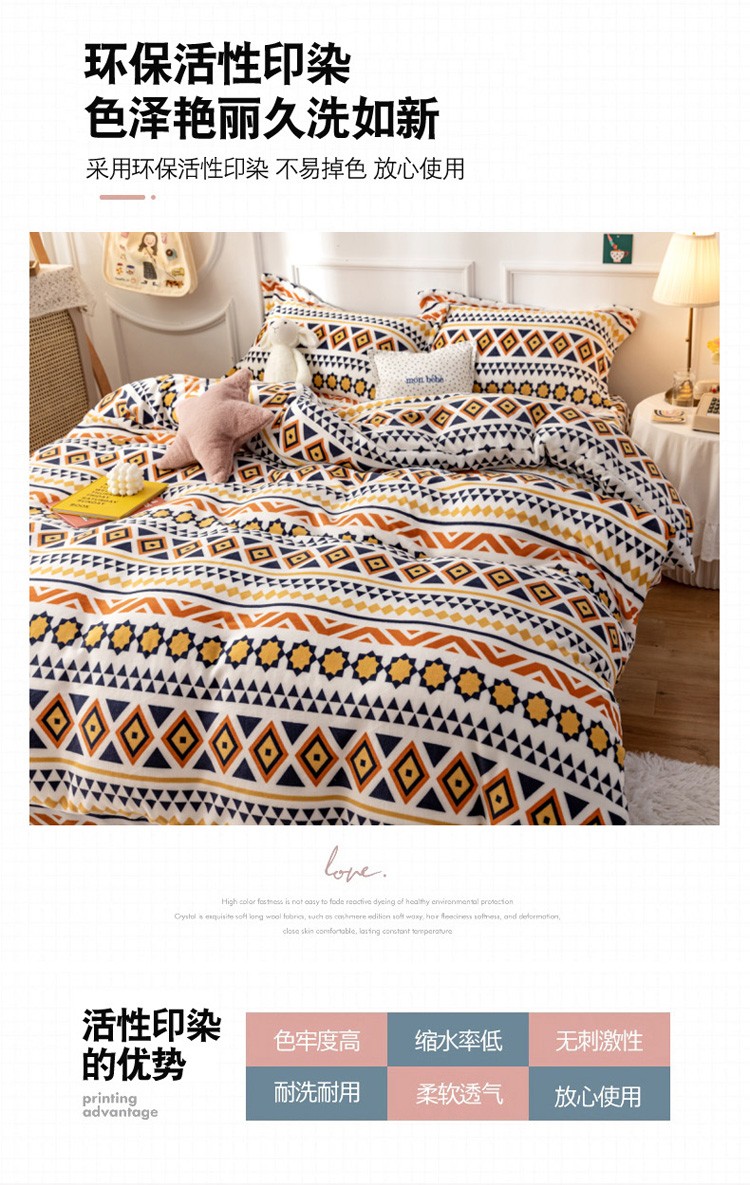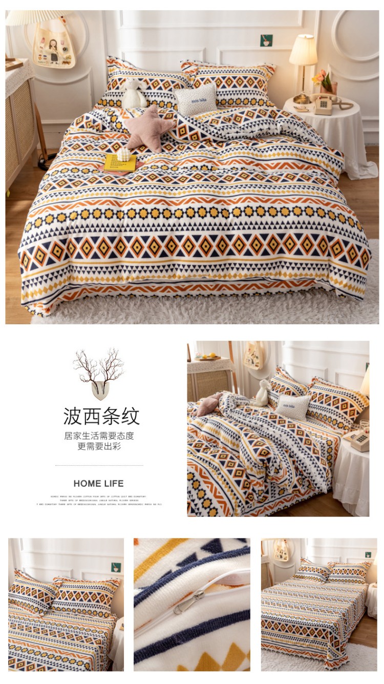 商品名称:珺柔 2020新款高克重牛奶绒四件套 波西条纹