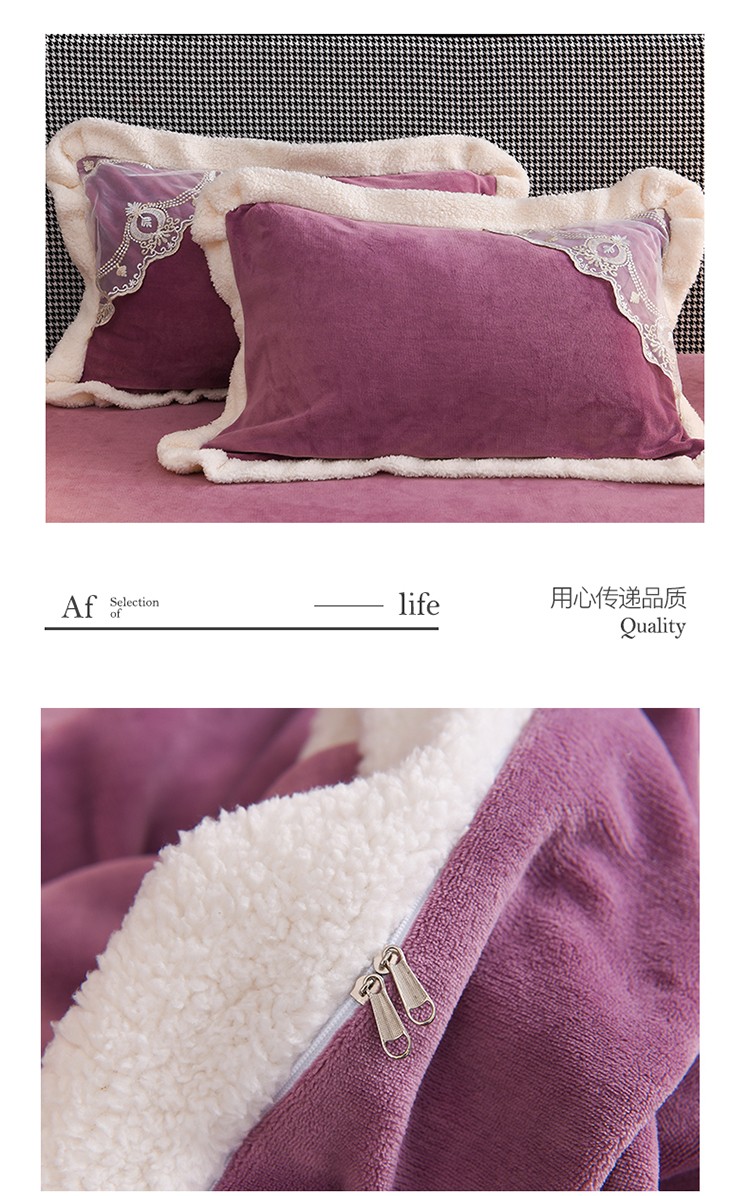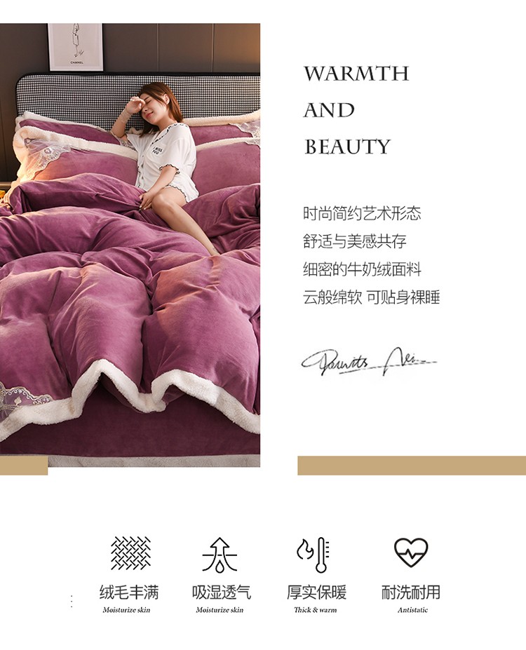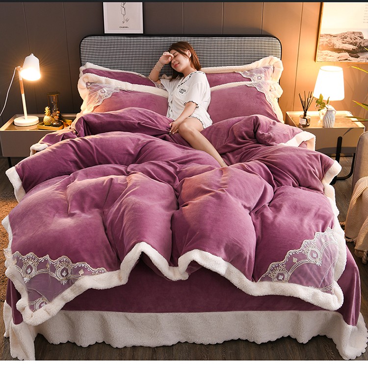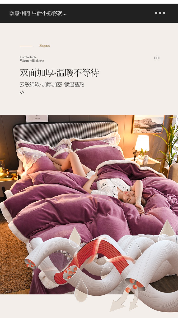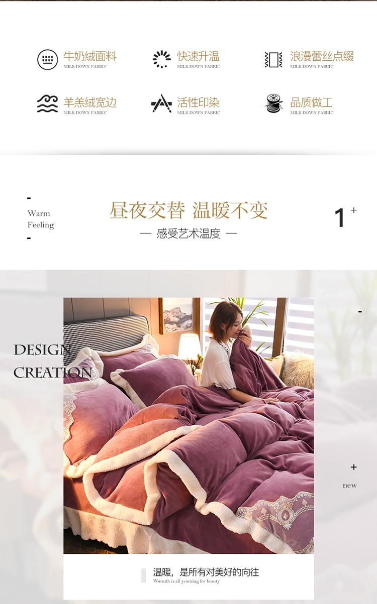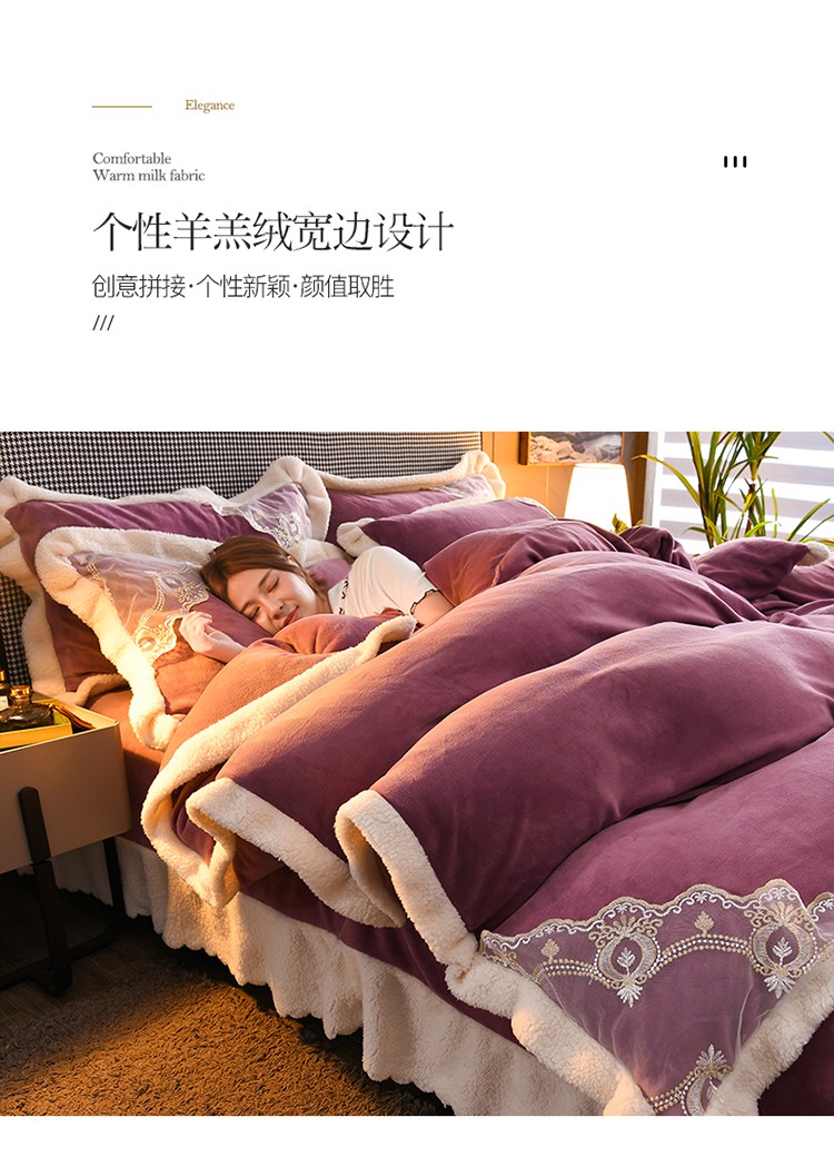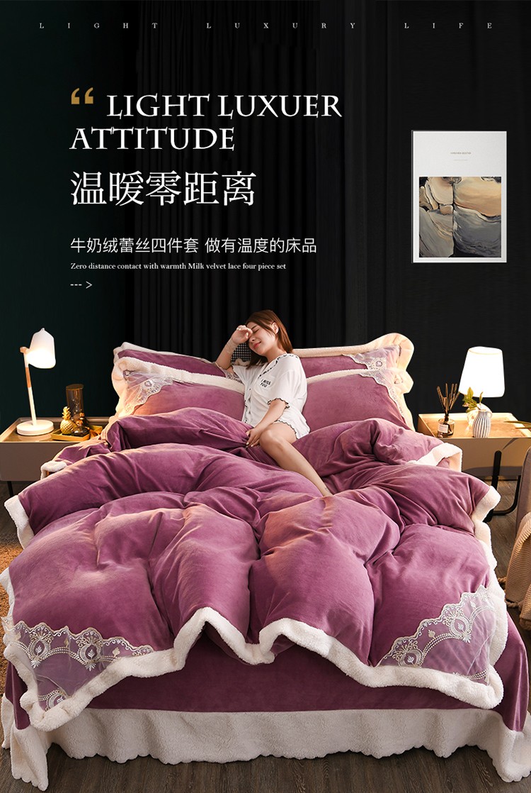 澳洲羽 2024新款牛奶绒蕾丝拼接款四件套 富贵紫
