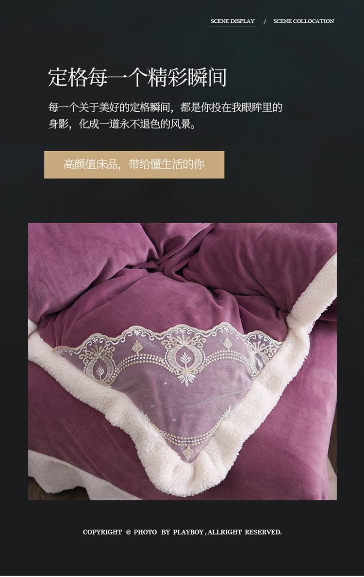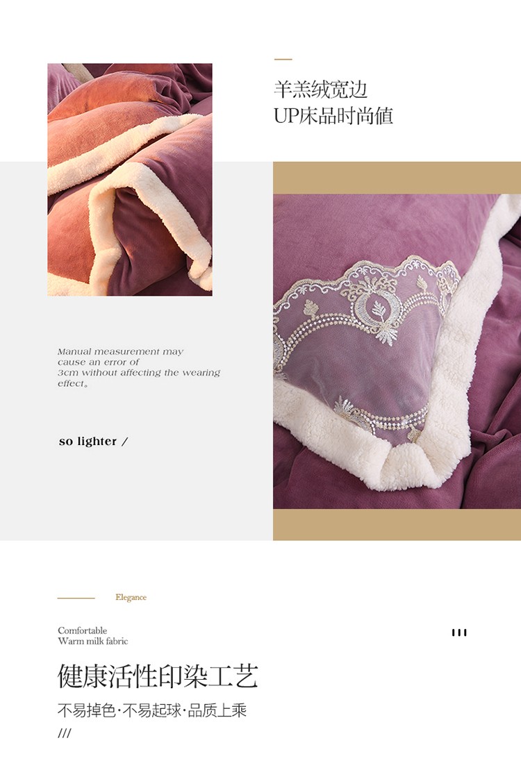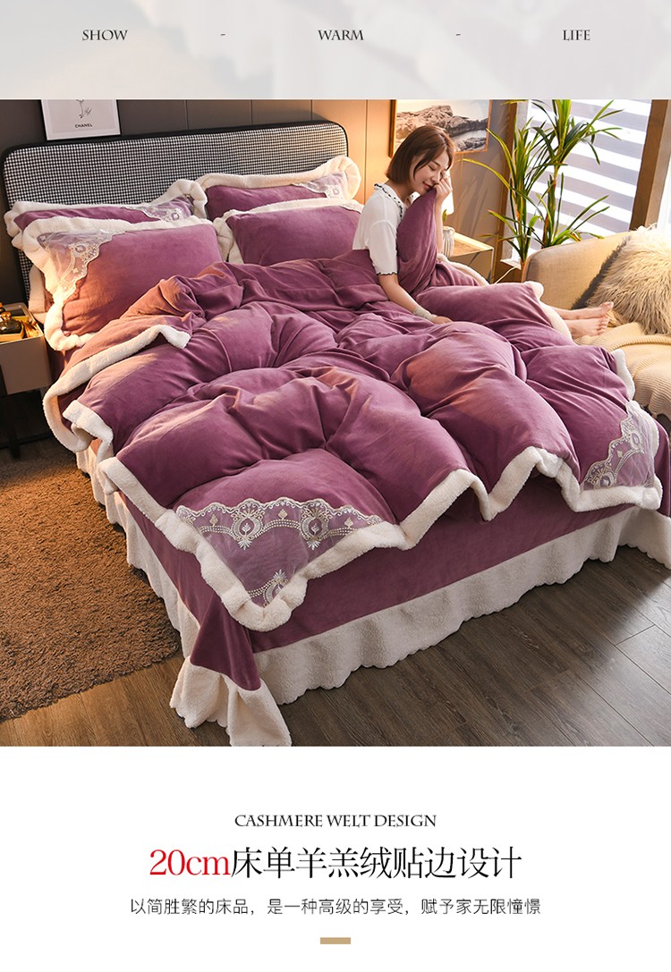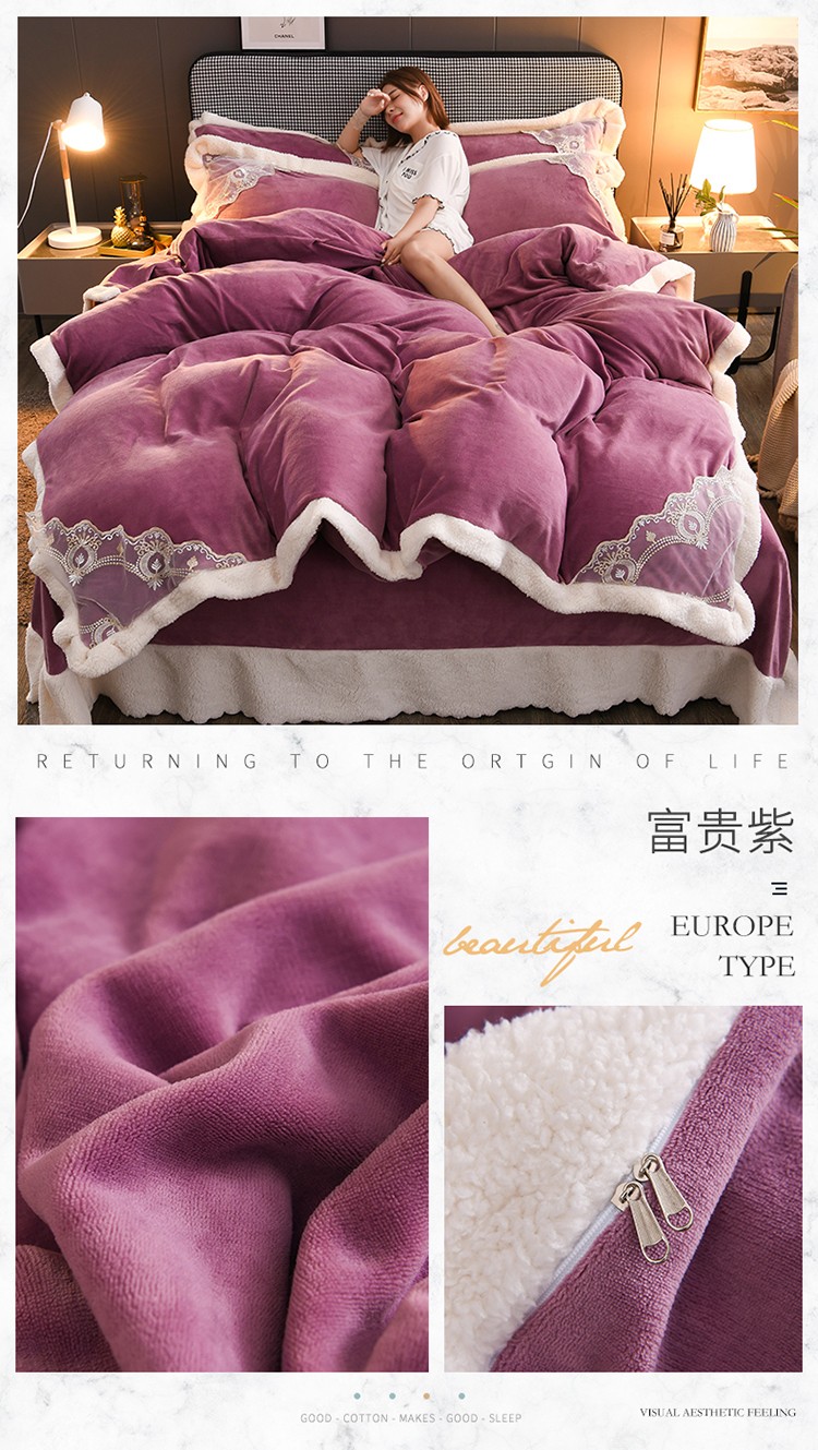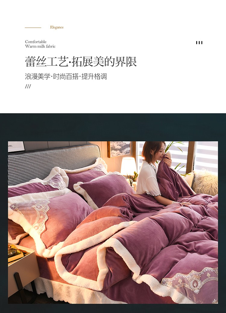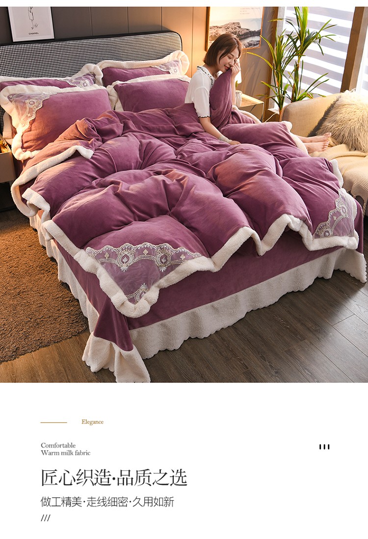 商品名称:澳洲羽 2024新款牛奶绒蕾丝拼接款四件套 富贵紫