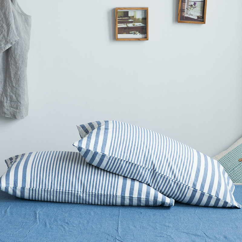尚品本色 2022新款水洗棉套件系列-单枕套 渐变蓝白条