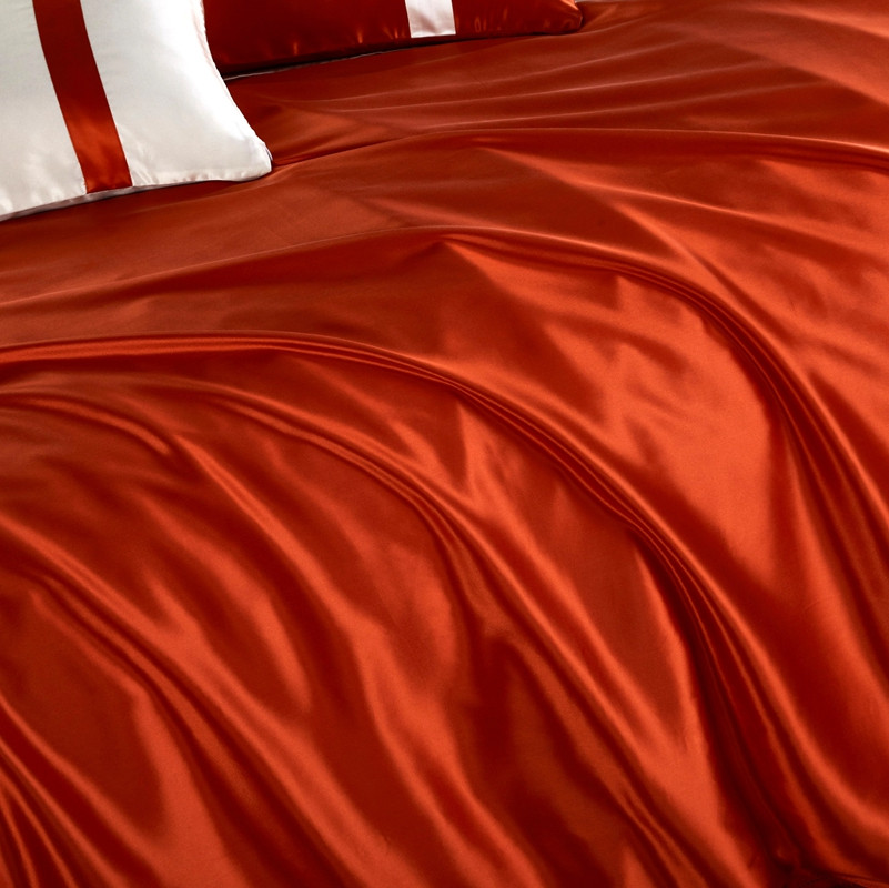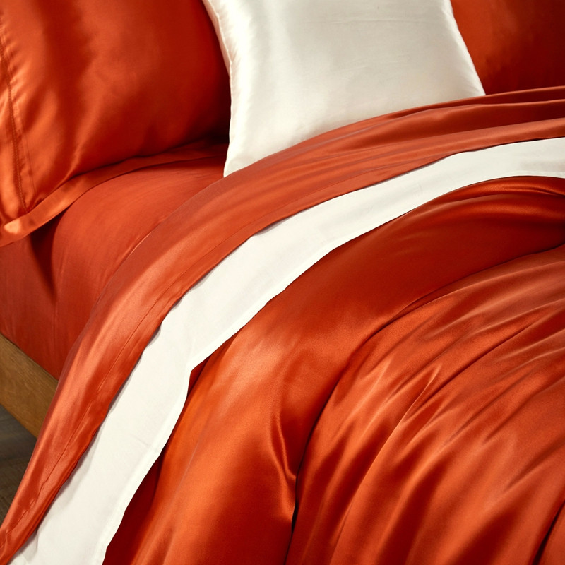商品名称:赫本真丝馆 2025新款素色全真丝系四件套 工艺款爱马仕橙