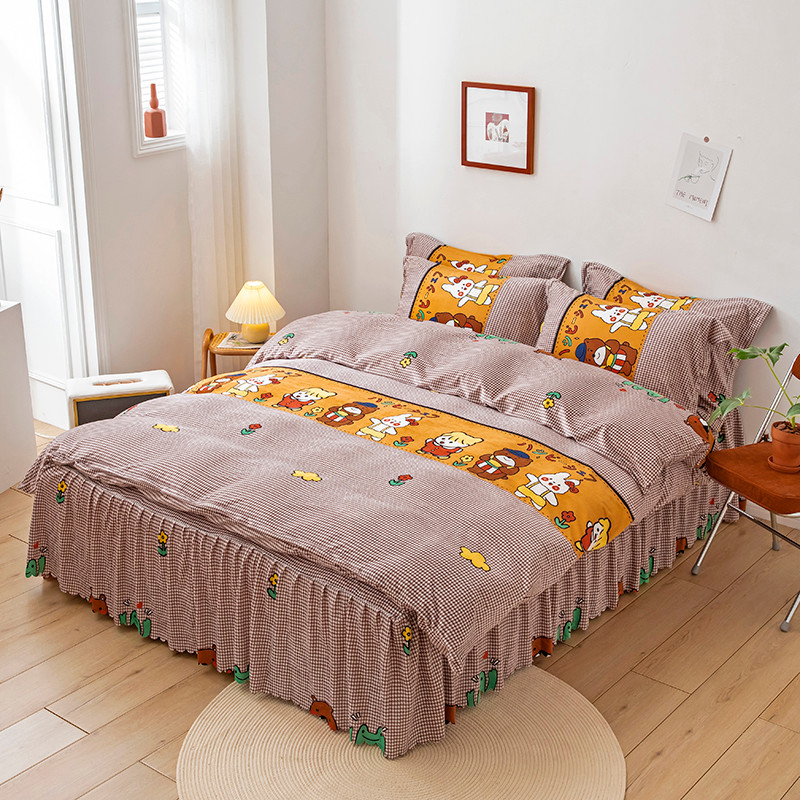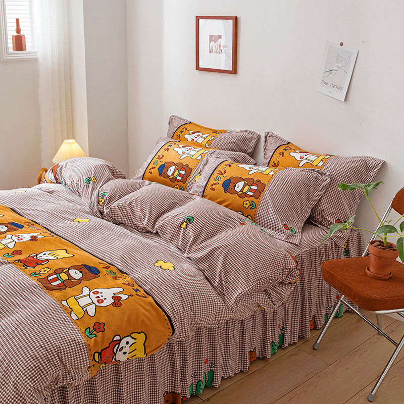 纽缦 2020新款绒单层床裙四件套 可可佳人浅咖