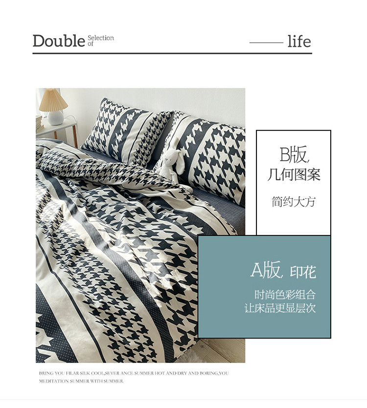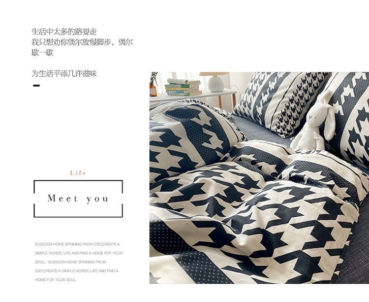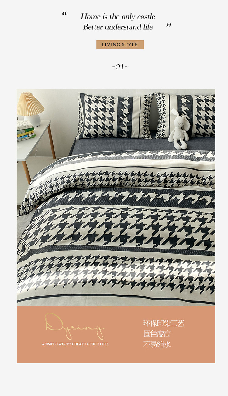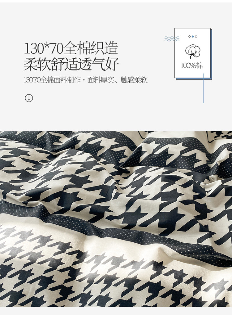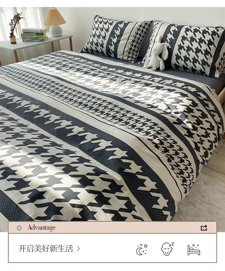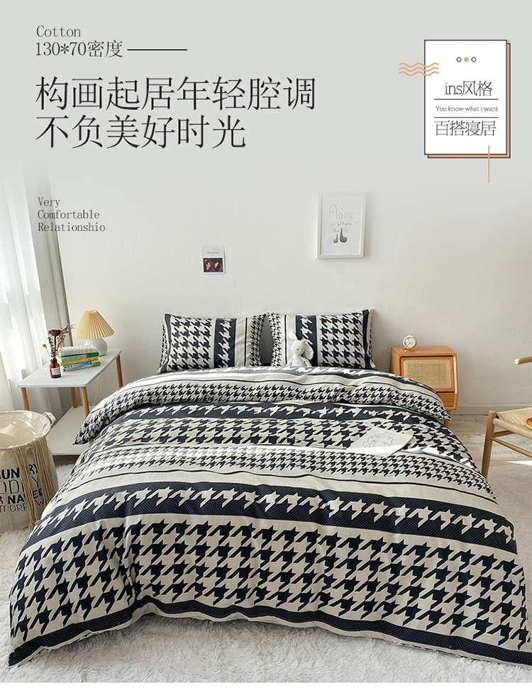 珺柔家纺 2021新款全棉印花四件套 千鸟格