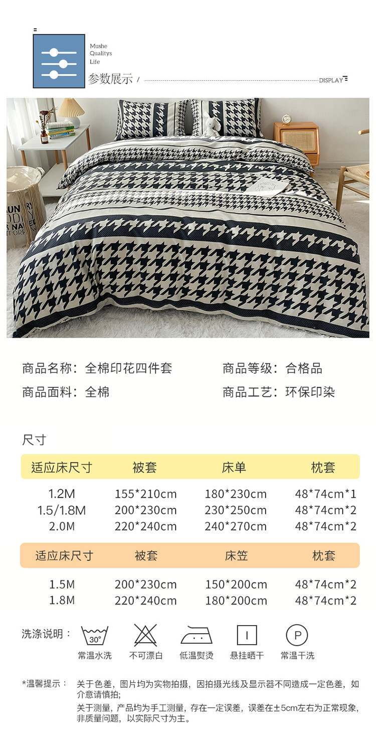 商品名称:珺柔家纺 2021新款全棉印花四件套 千鸟格