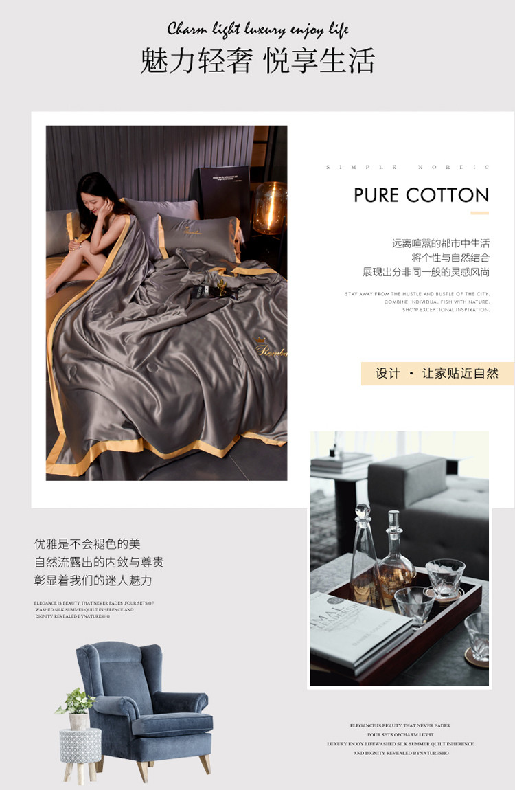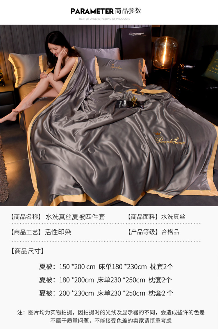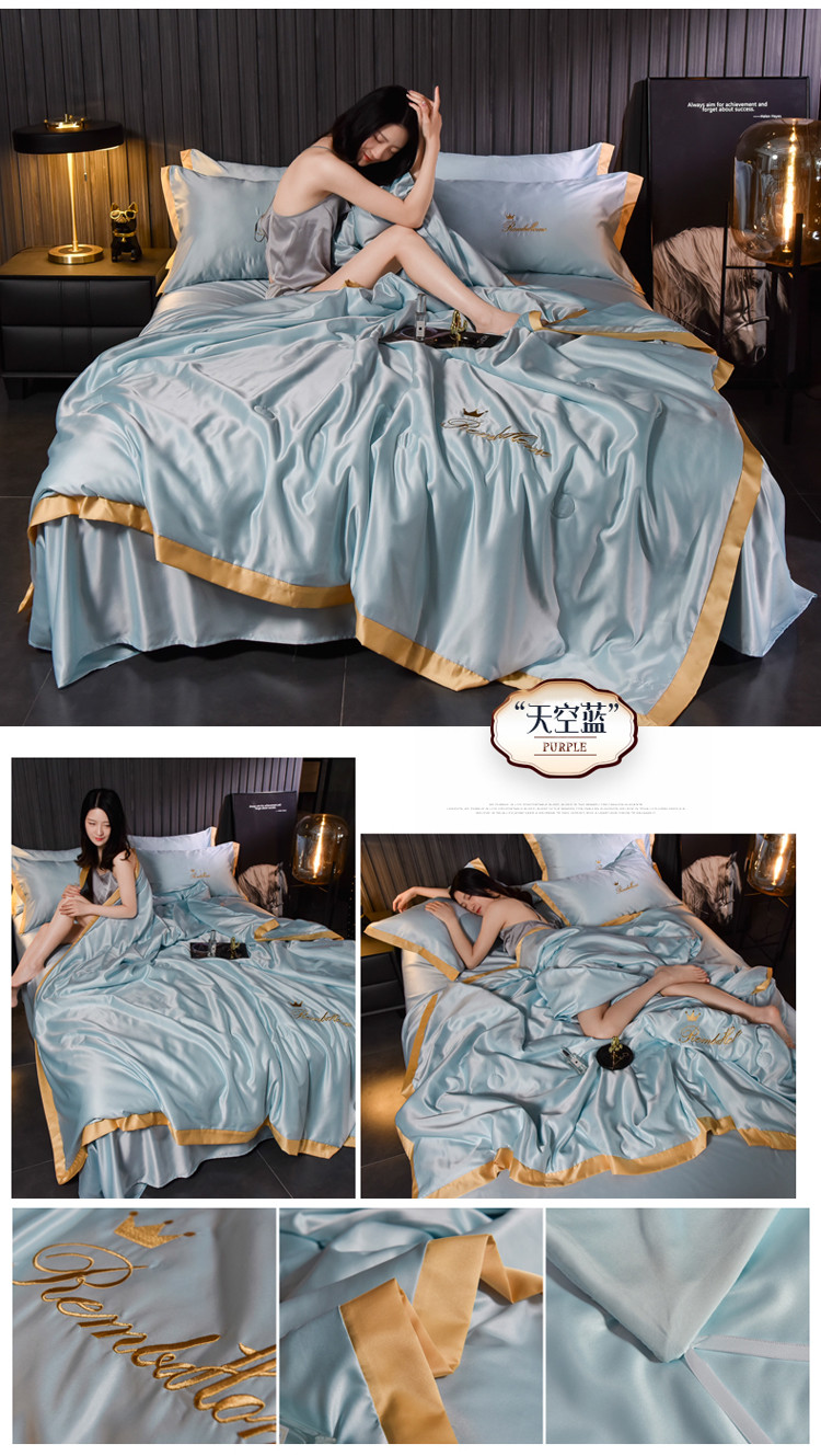 (总)简爱 2025新款水洗真丝夏被四件套,宝石蓝,冰清绿,粉玉,贵族白,孔雀绿,浪漫紫,深空灰,天空蓝,香槟郁,幽心兰