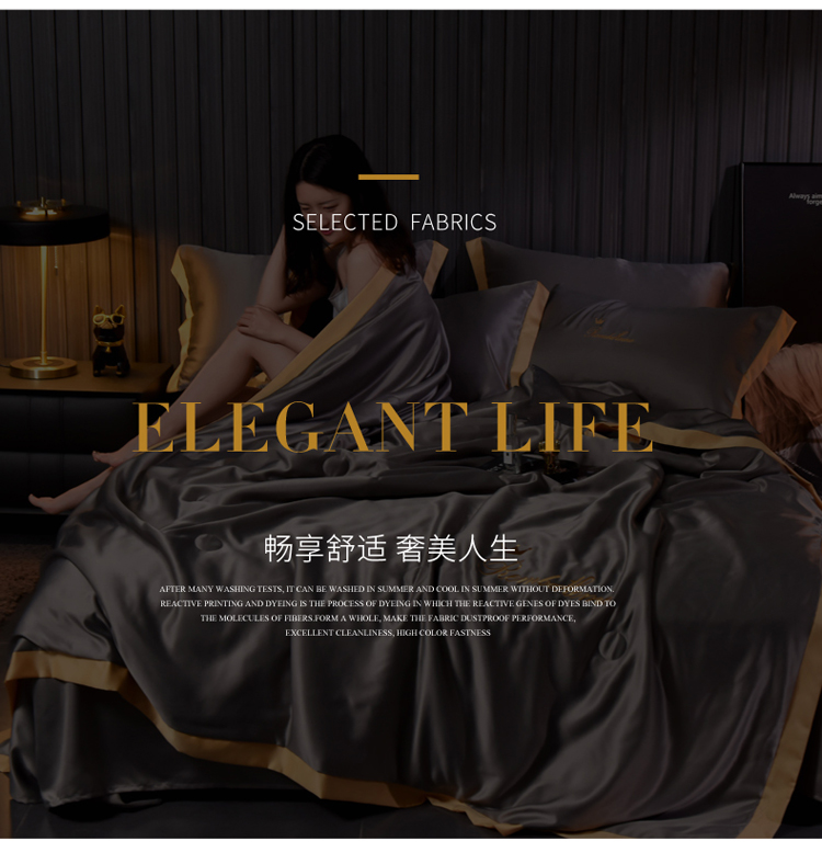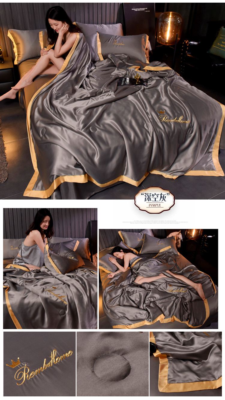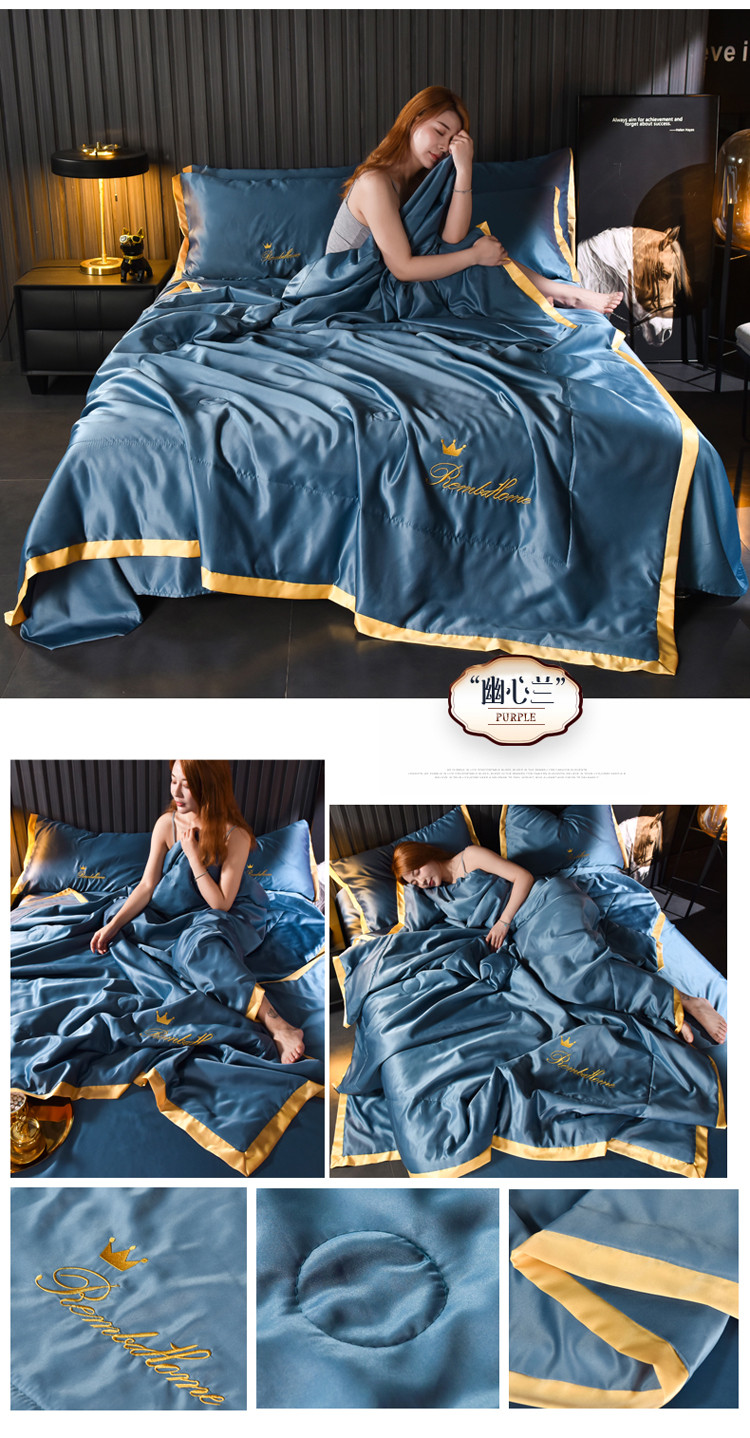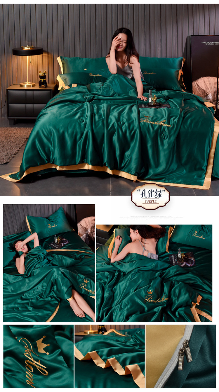 (总)简爱 2025新款水洗真丝夏被四件套,宝石蓝,冰清绿,粉玉,贵族白,孔雀绿,浪漫紫,深空灰,天空蓝,香槟郁,幽心兰