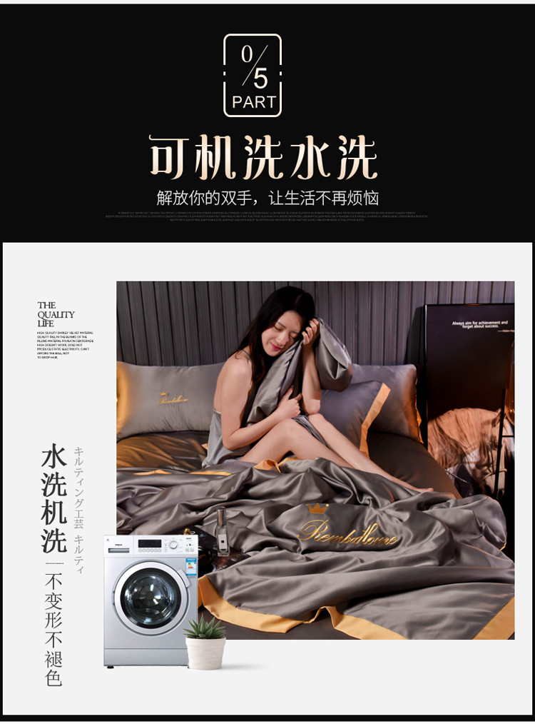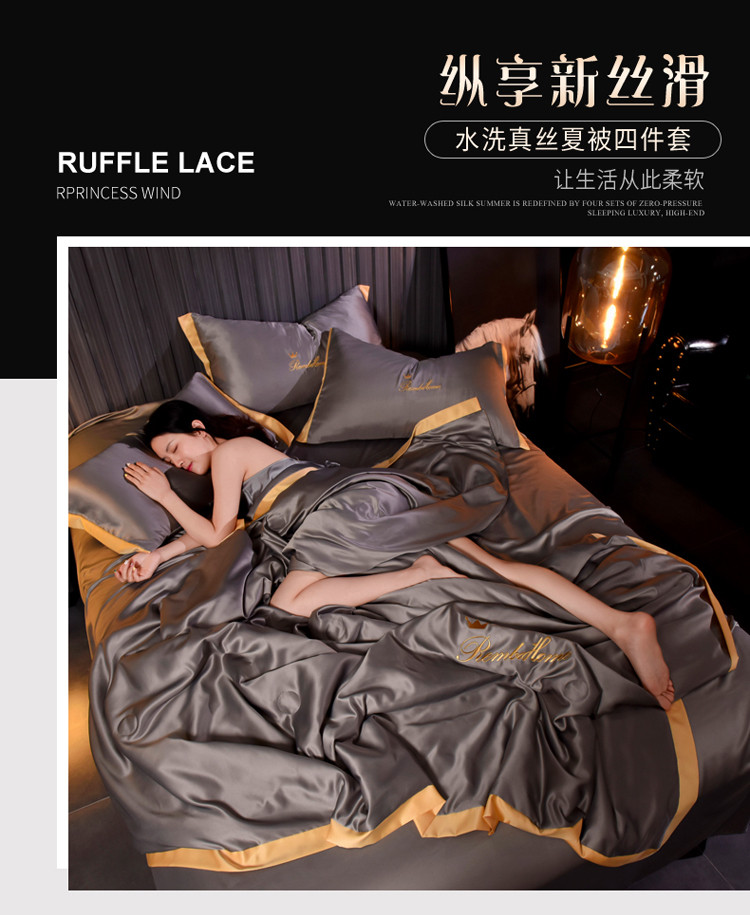 商品名称:(总)简爱 2025新款轻奢刺绣水洗真丝夏被四件套