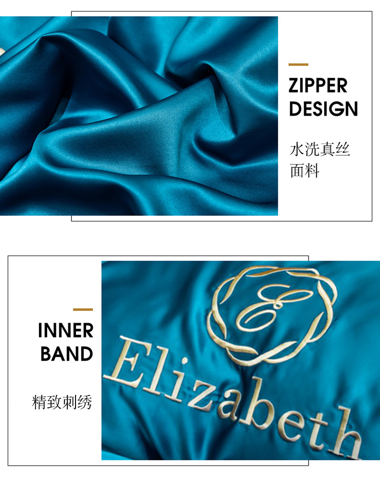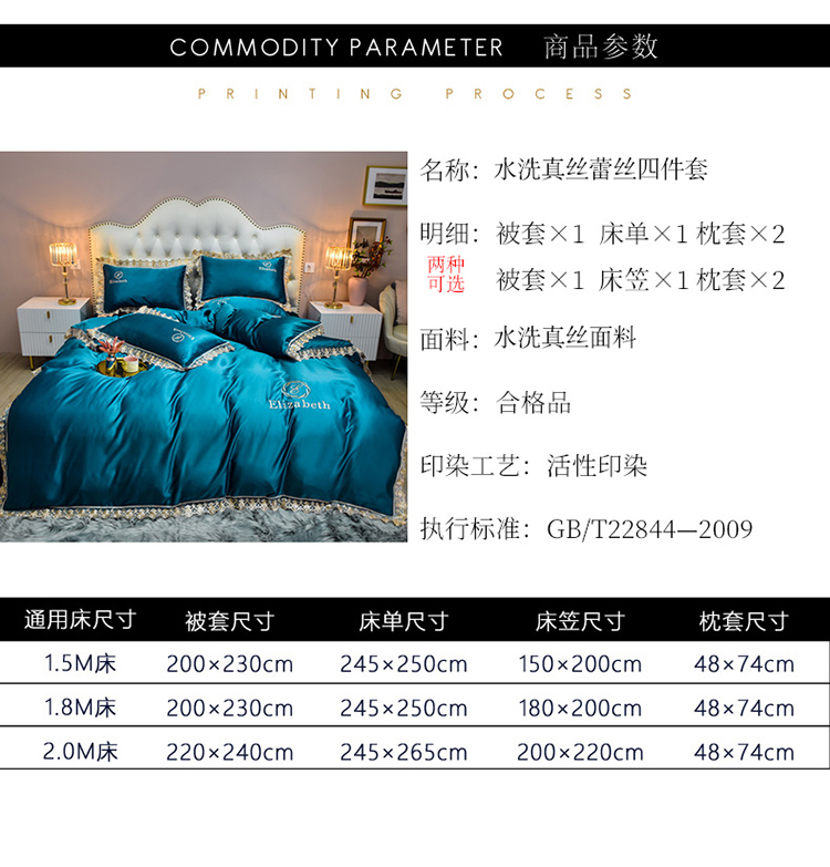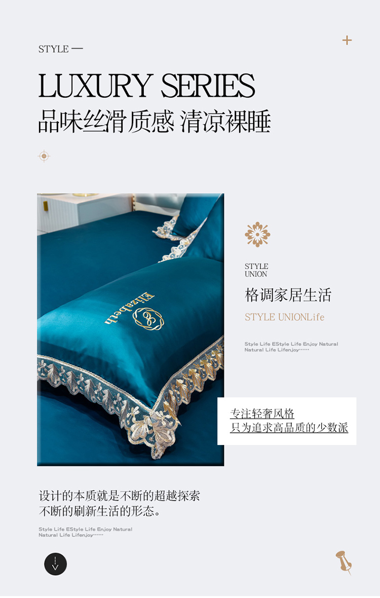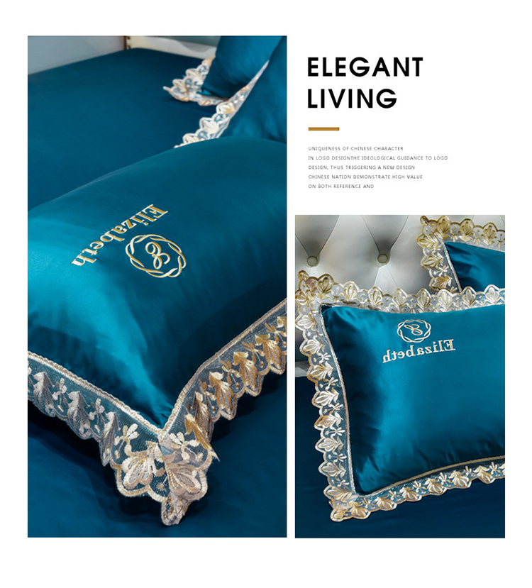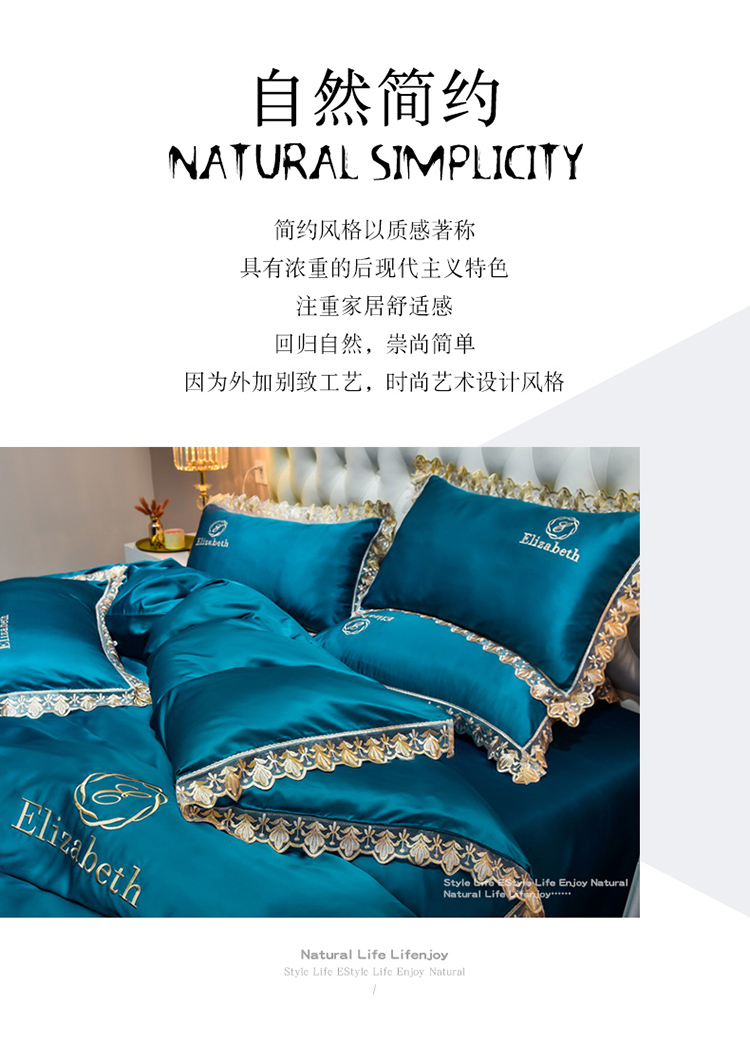 米奈家居 2021新款水洗真丝蕾丝花边爱琳四件套 孔雀蓝